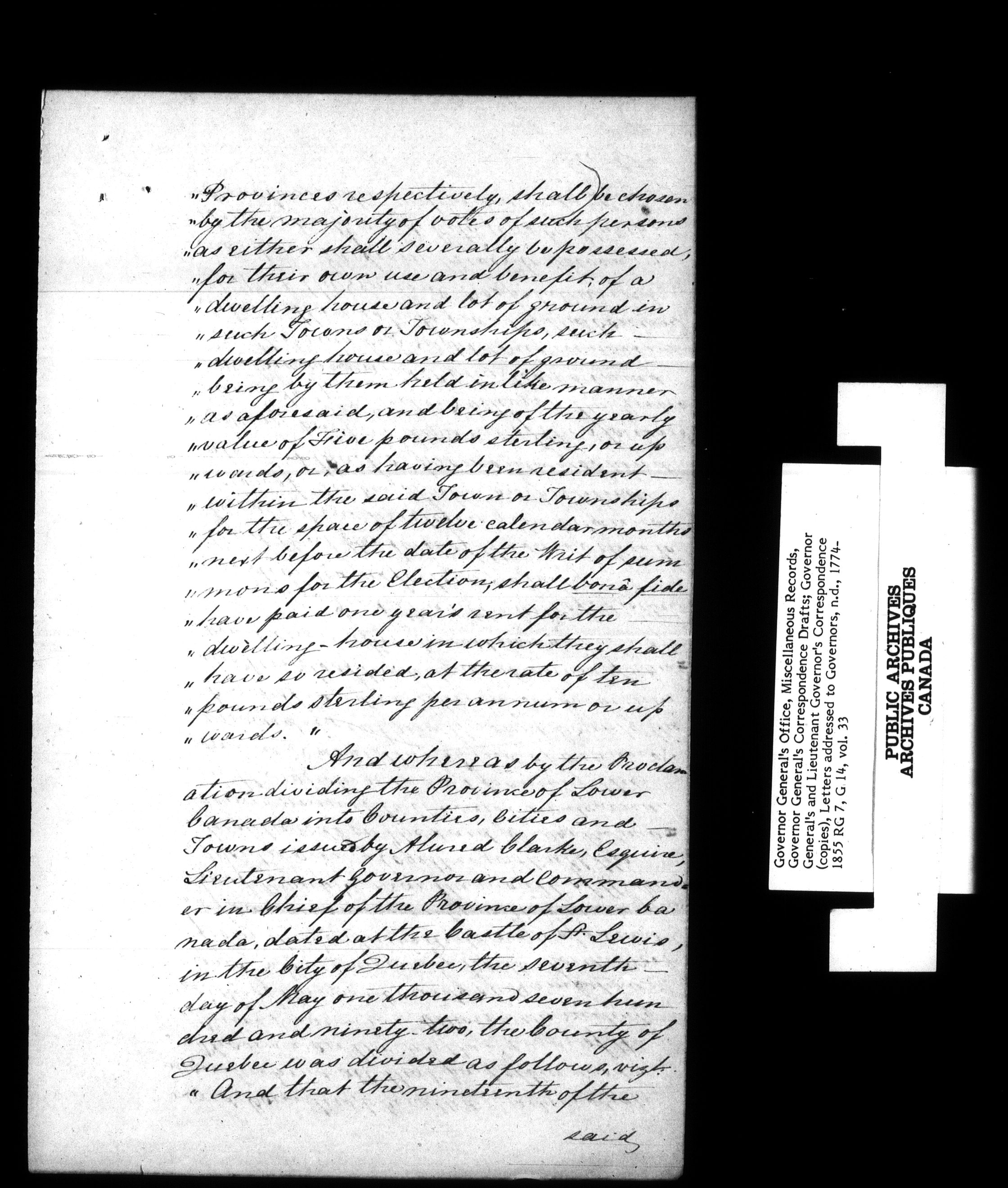 [Correspondence received by the Governor-in-Chief of Lower Canada, the Governor-in-Chief of the Province of Canada, and the Governor General of the Dominion of Canada] : H-1187