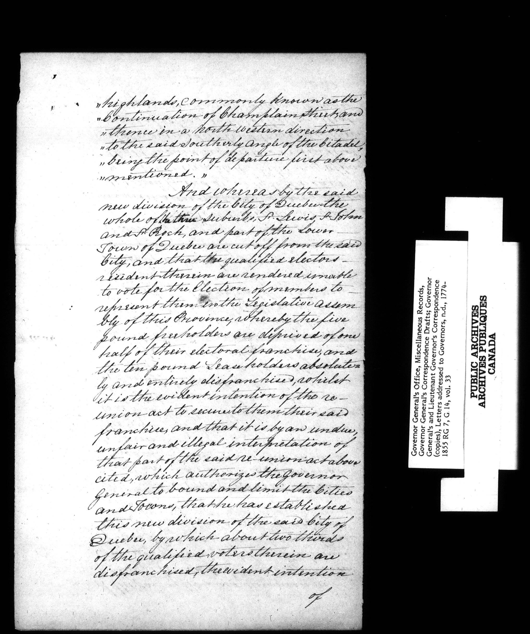 [Correspondence received by the Governor-in-Chief of Lower Canada, the Governor-in-Chief of the Province of Canada, and the Governor General of the Dominion of Canada] : H-1187