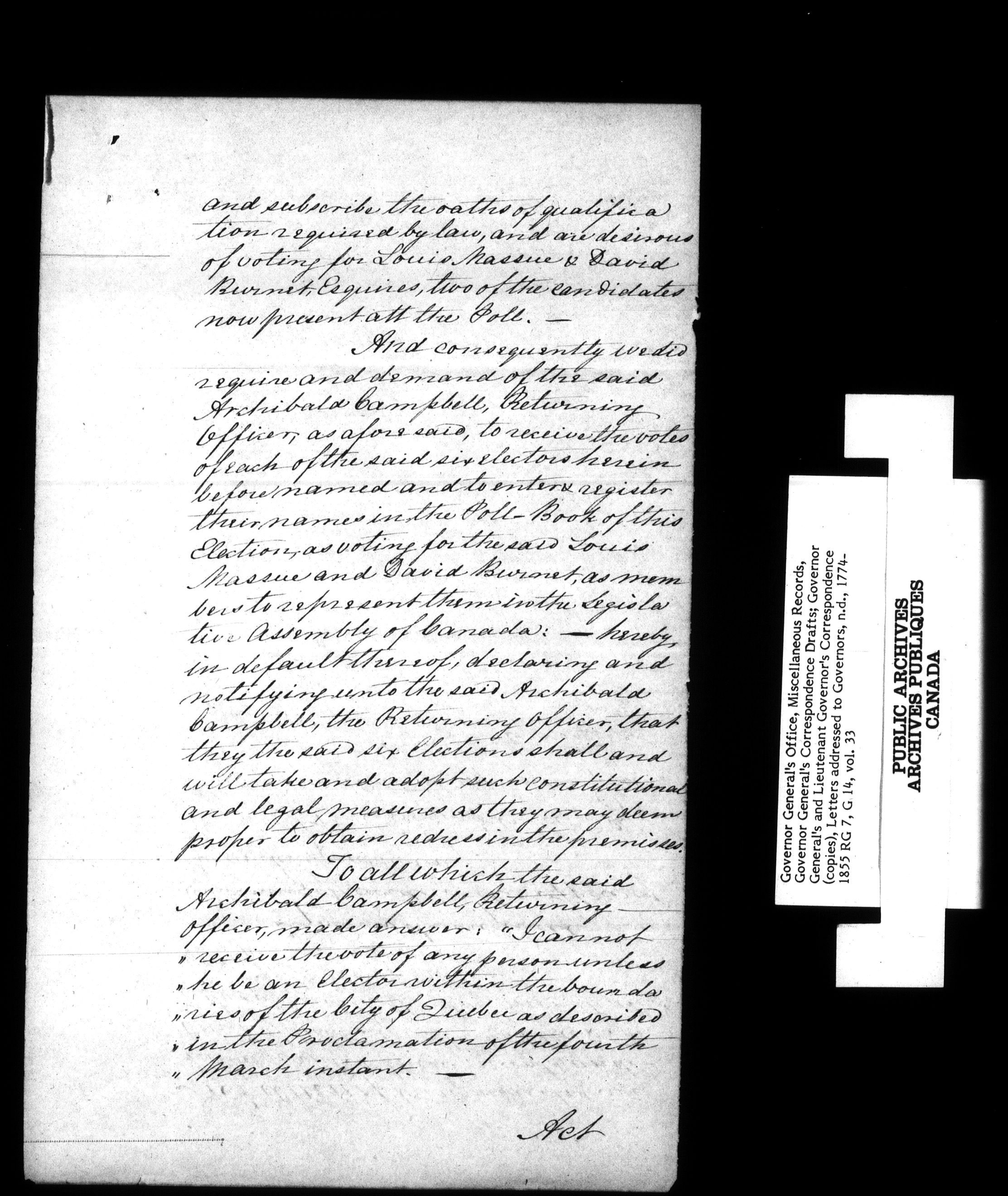 [Correspondence received by the Governor-in-Chief of Lower Canada, the Governor-in-Chief of the Province of Canada, and the Governor General of the Dominion of Canada] : H-1187