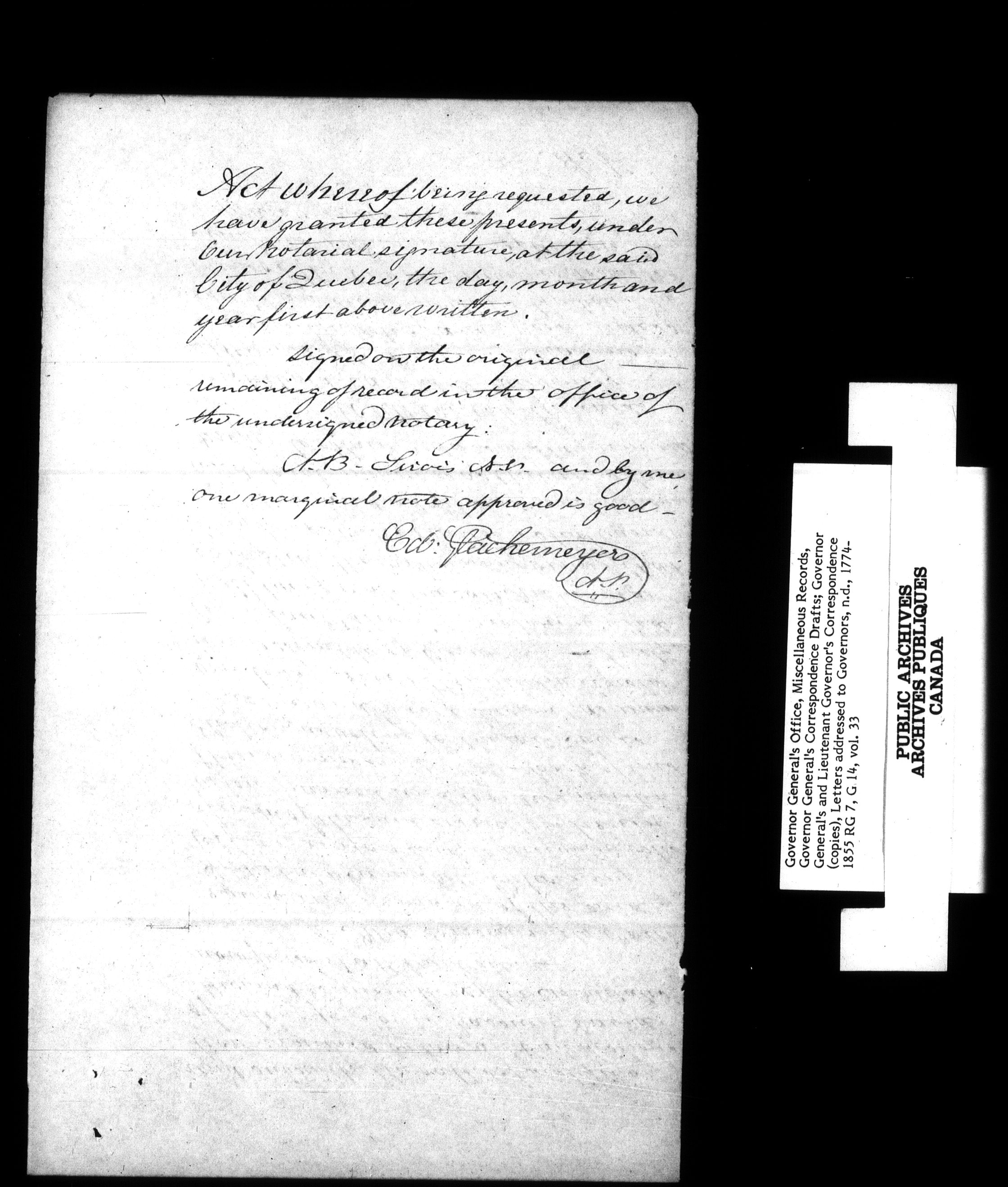 [Correspondence received by the Governor-in-Chief of Lower Canada, the Governor-in-Chief of the Province of Canada, and the Governor General of the Dominion of Canada] : H-1187