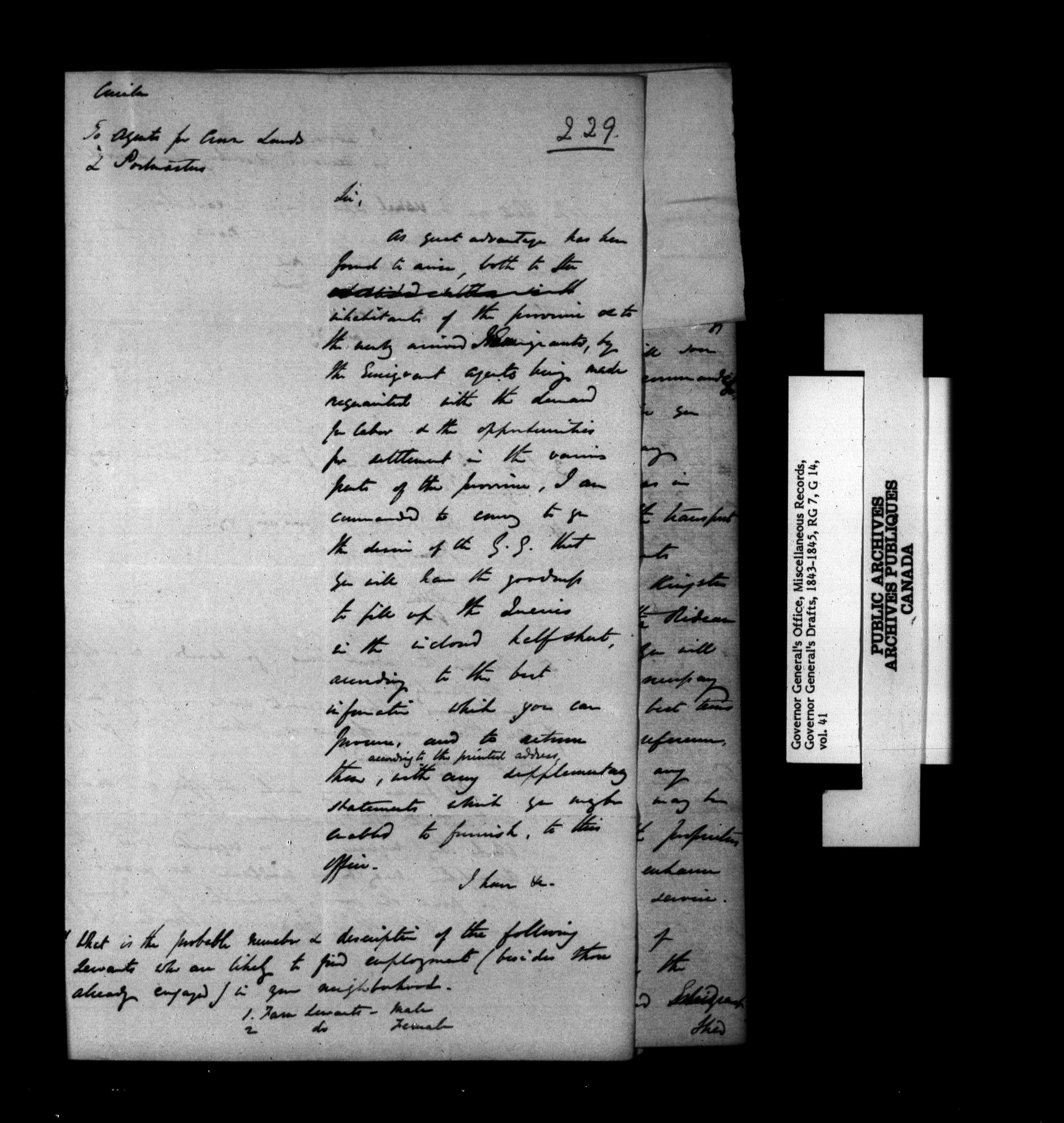 Canada: Governor General's Office, Miscellaneous Records - 1190