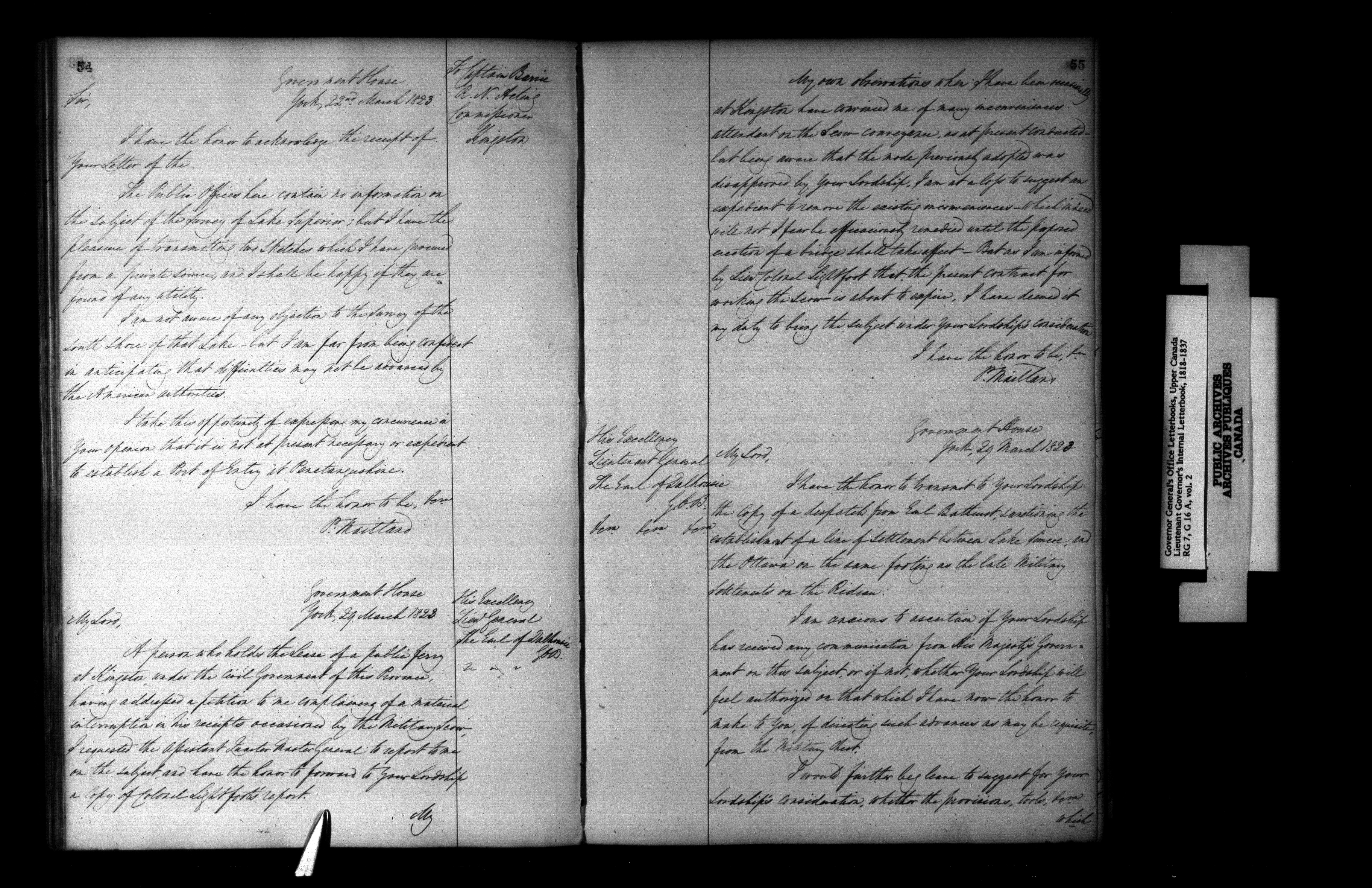 Canada : Governor General's Office, Internal Letterbooks, Upper Canada to and from Treasury : H-1200