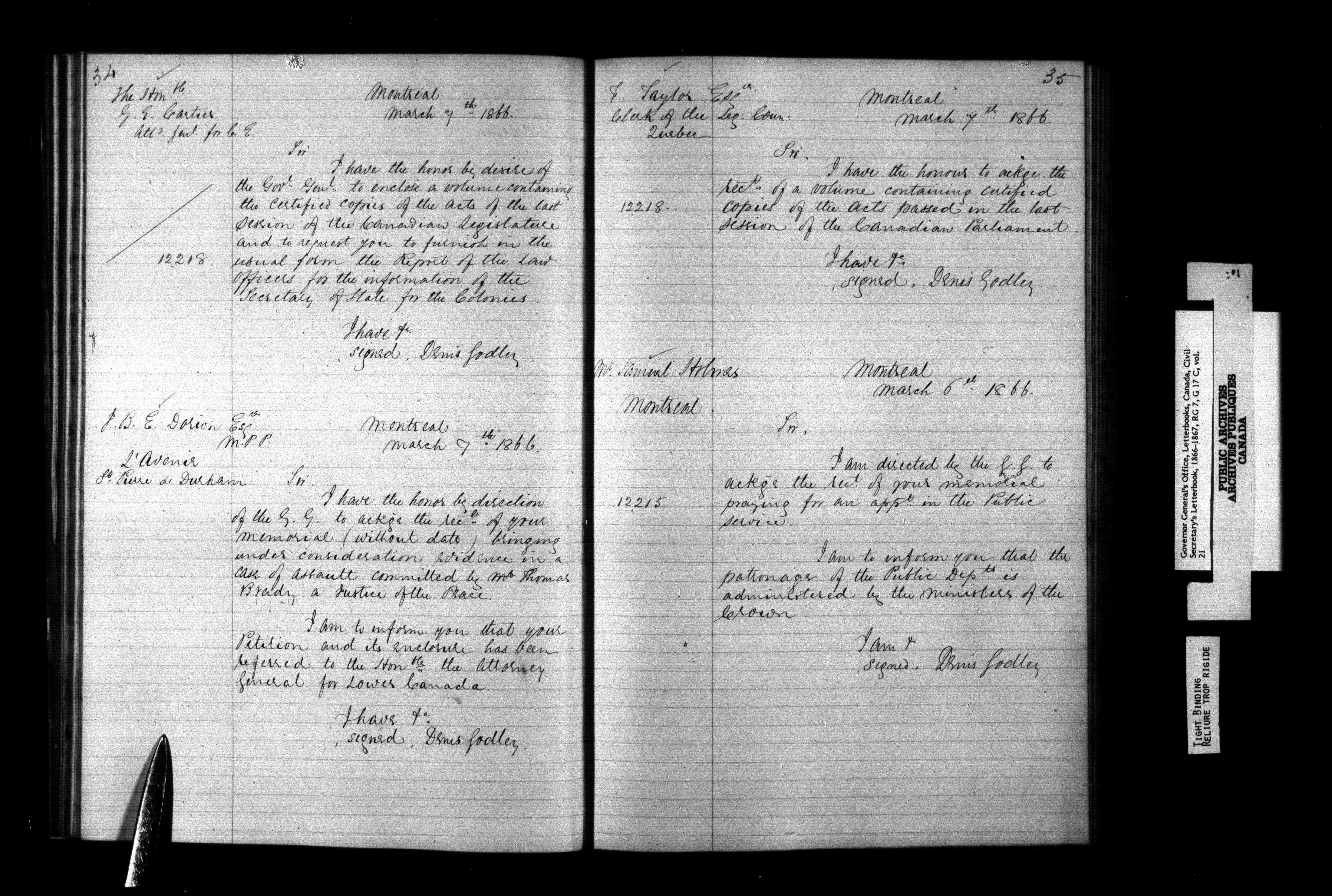Canada : Governor General's Office, Letterbooks, Canada / Entry Books - 1206