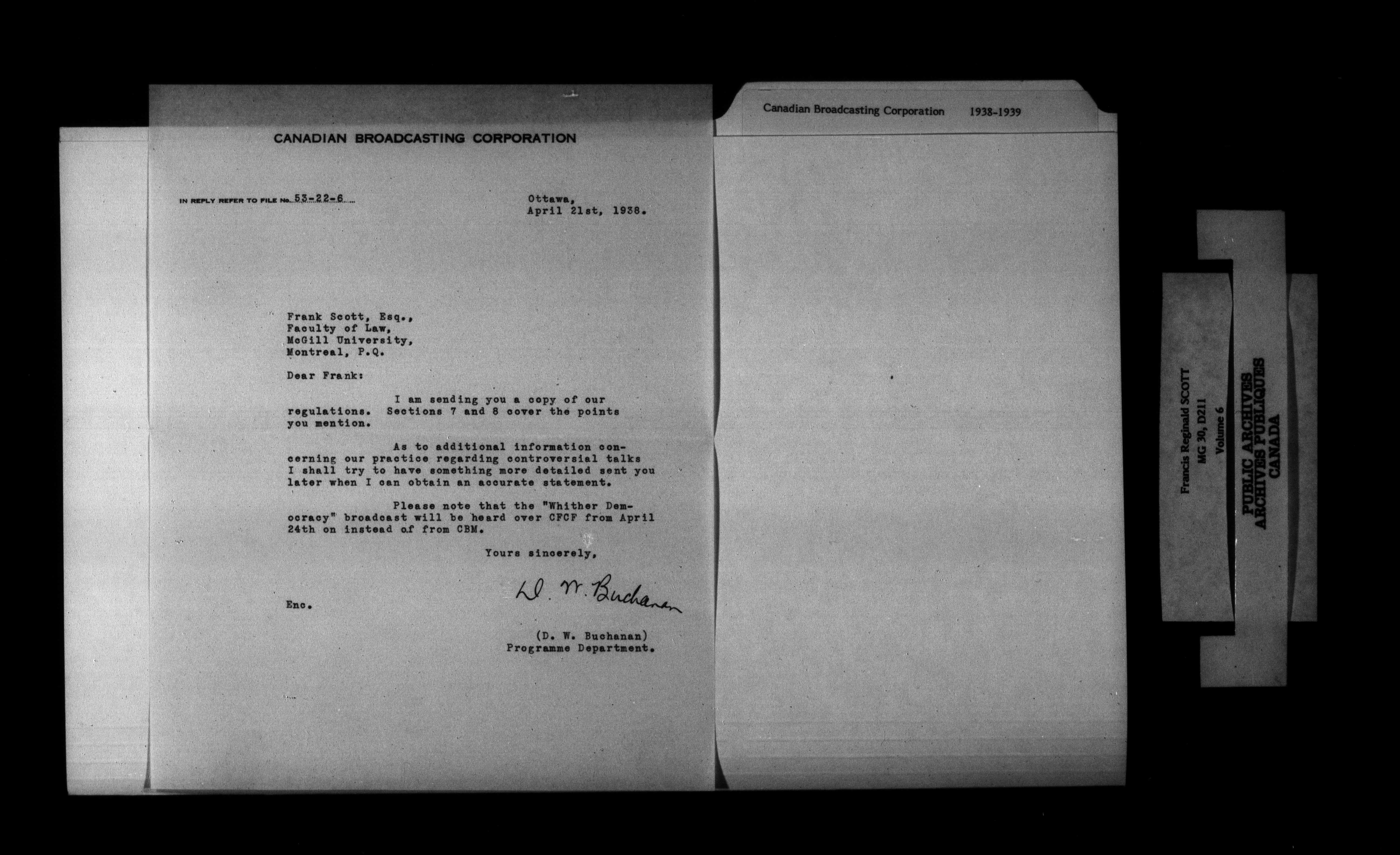 Francis Reginald Scott : Subject files, Series I - 1218
