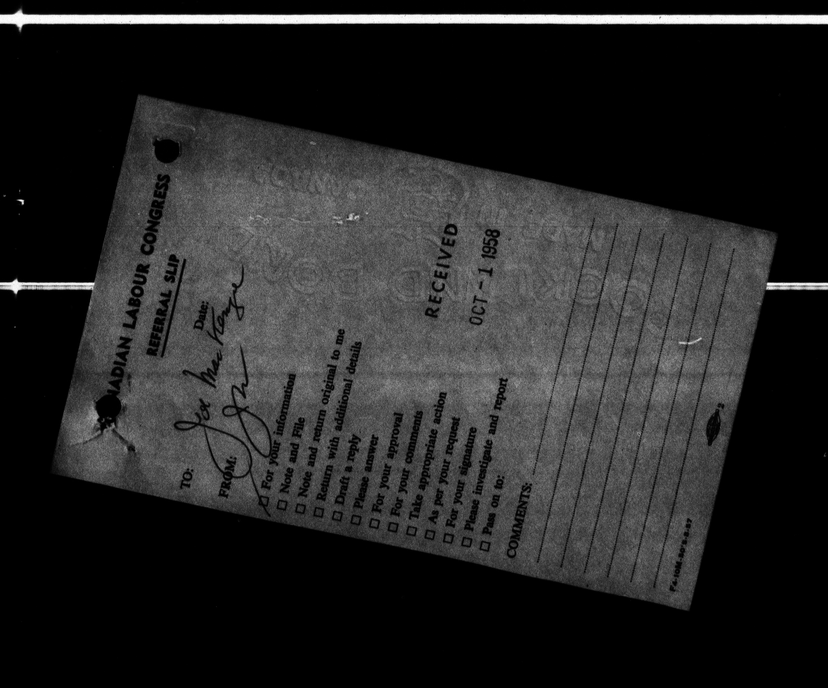 Canadian Labour Congress : Organization Department files : H-122