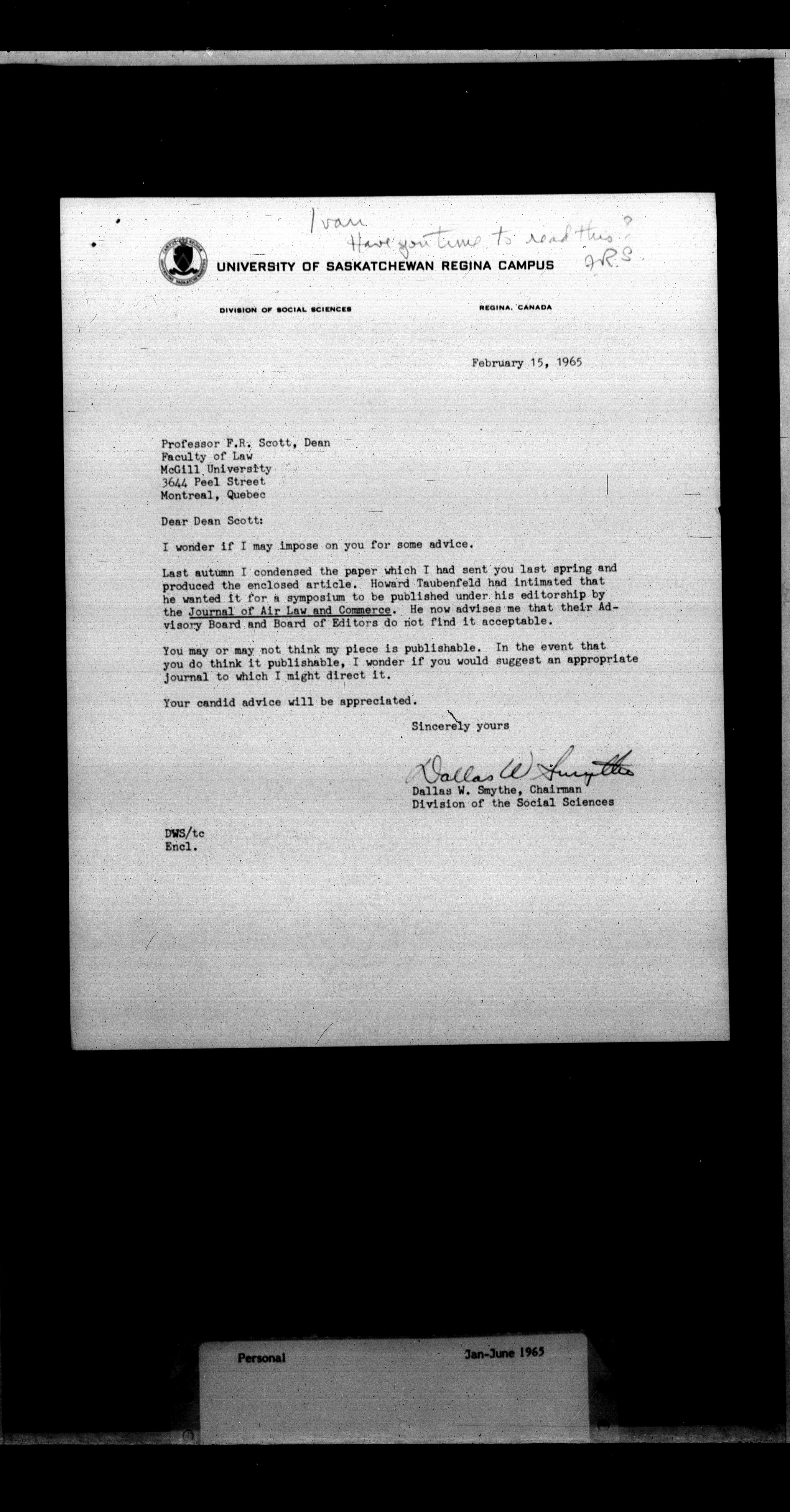 Francis Reginald Scott : Subject files, Series II - 1252
