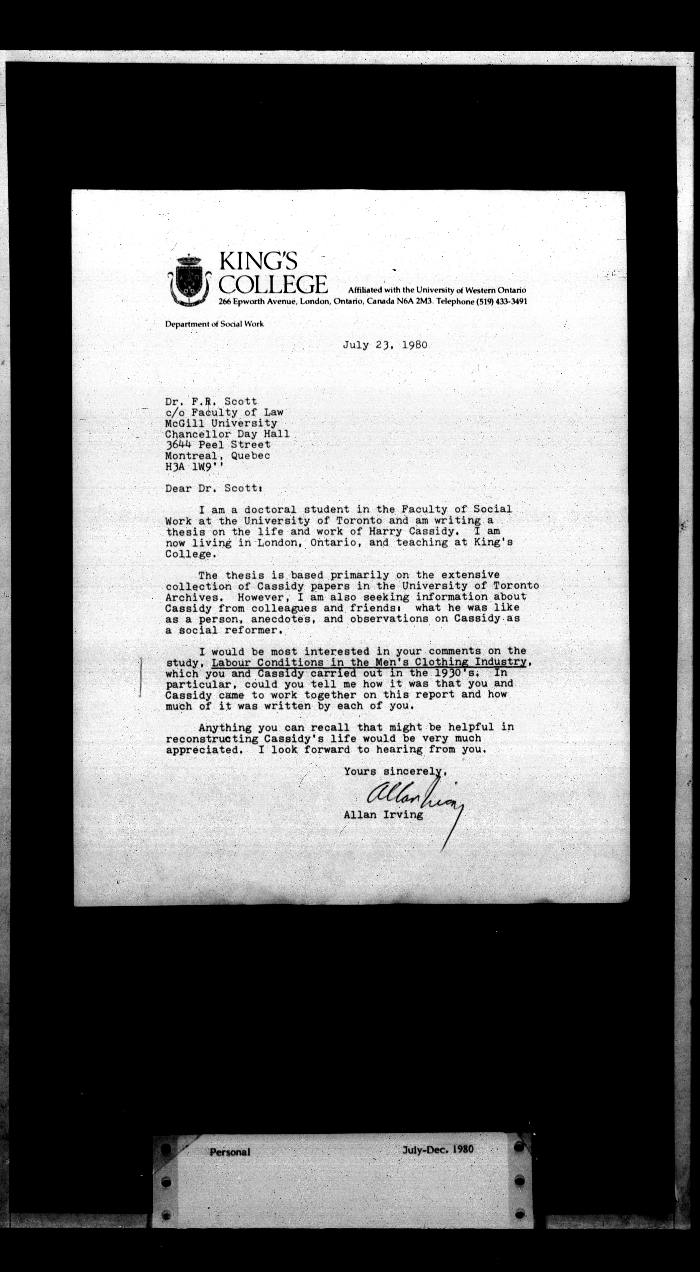 Francis Reginald Scott : Subject files, Series II - 1255