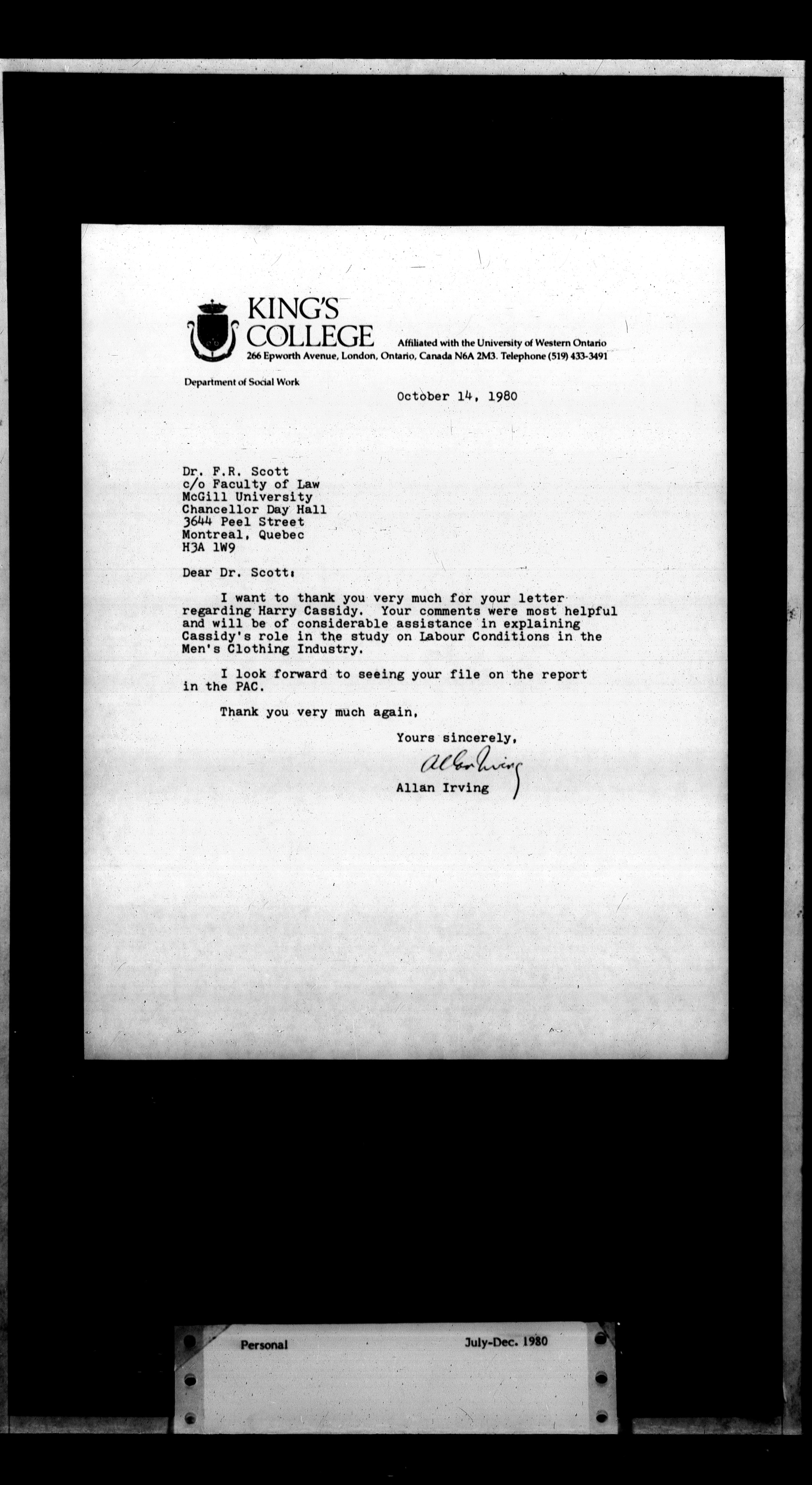 Francis Reginald Scott : Subject files, Series II - 1255