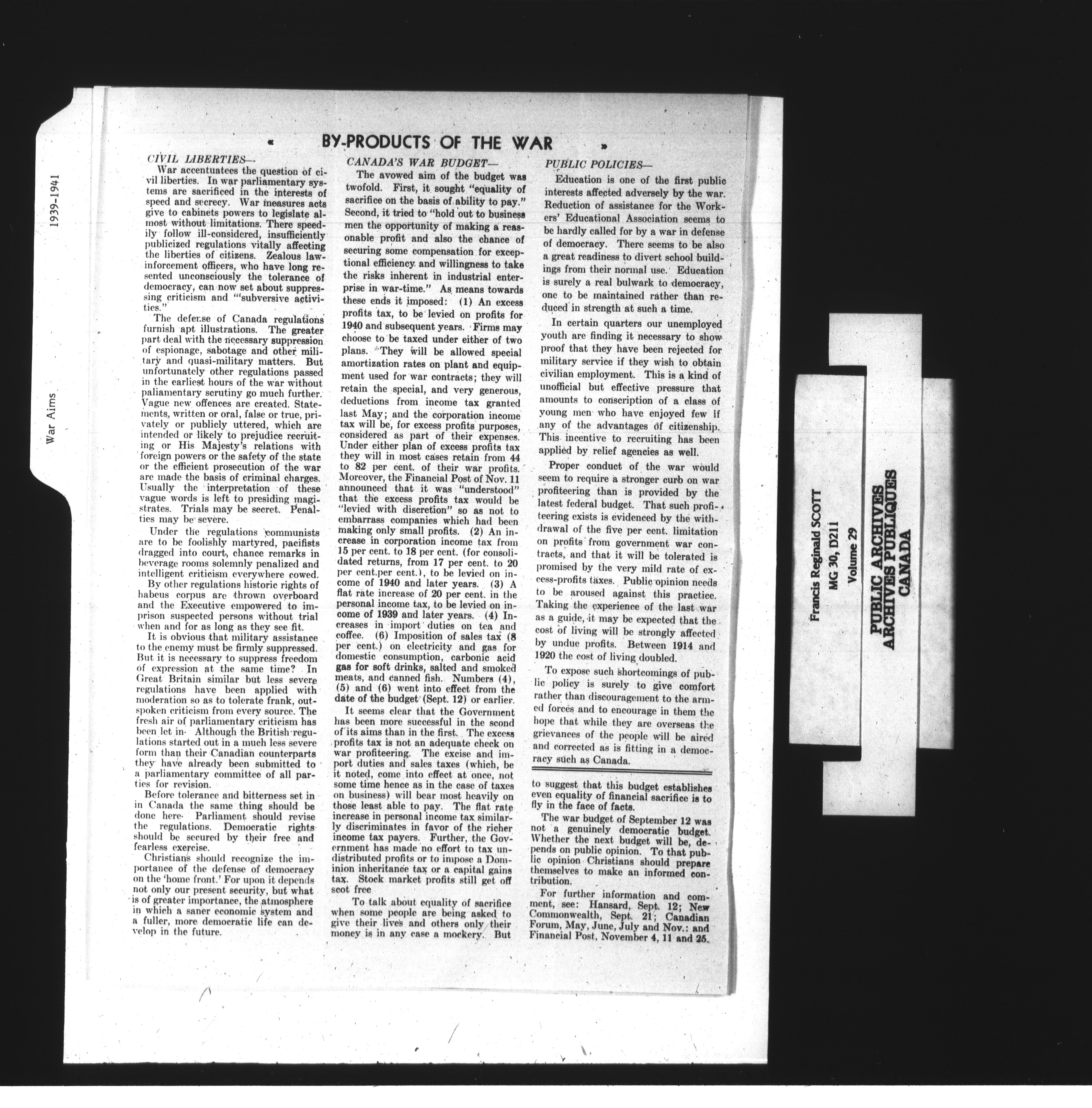 Francis Reginald Scott : Subject files, Series I - 1291