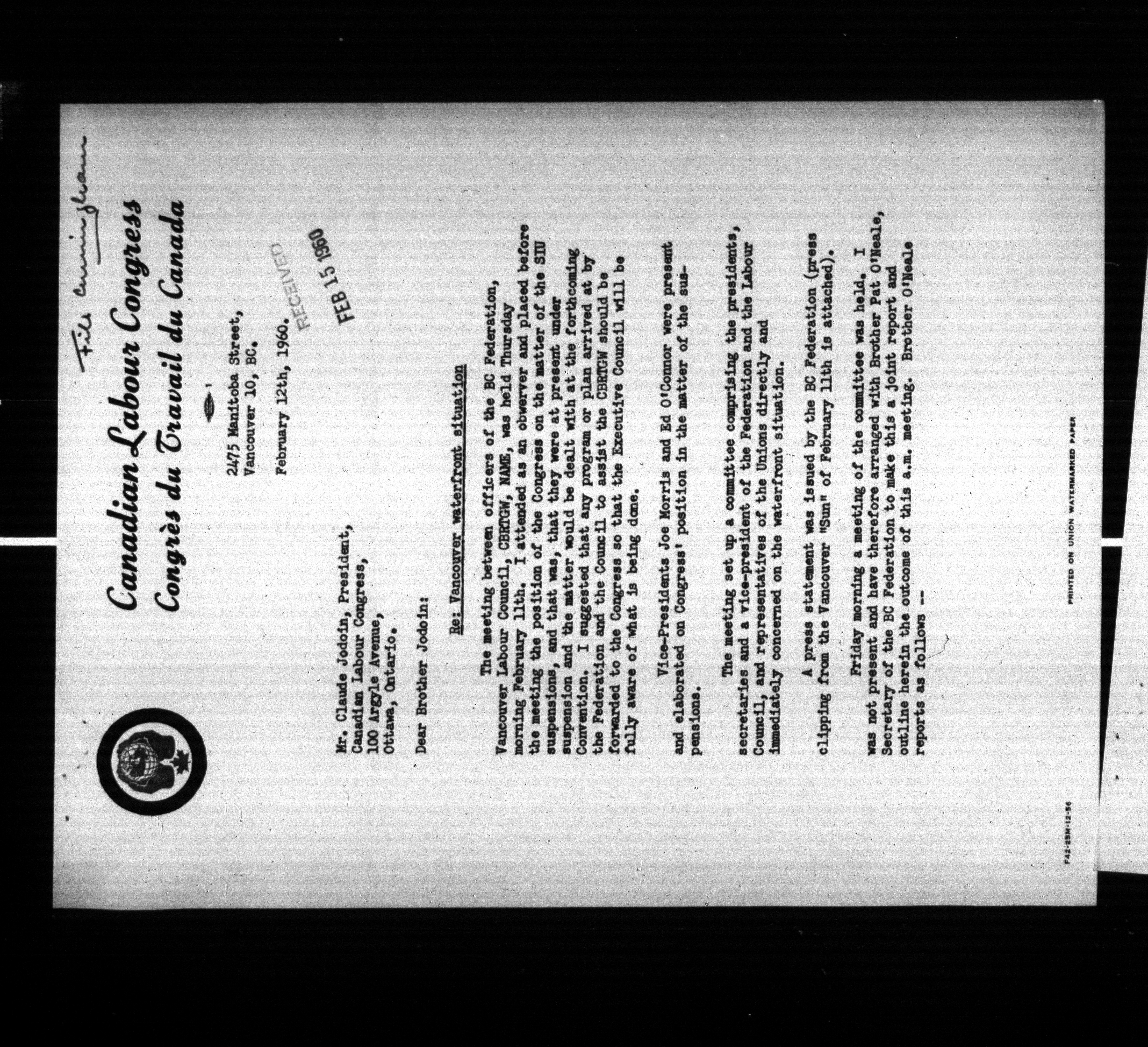 Canadian Labour Congress : President Claude Jodoin's files : H-130
