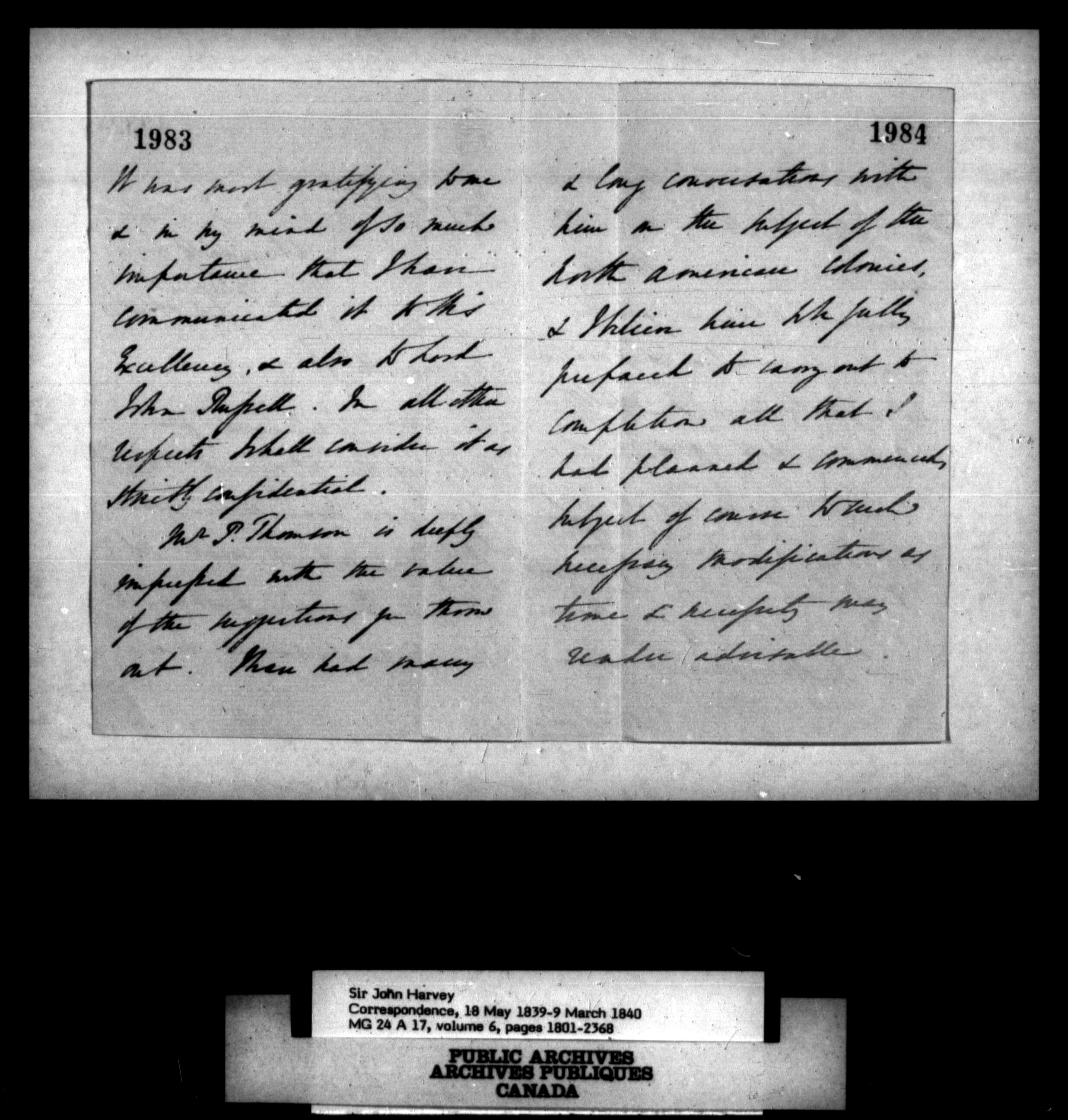 Sir John Harvey, Correspondence
