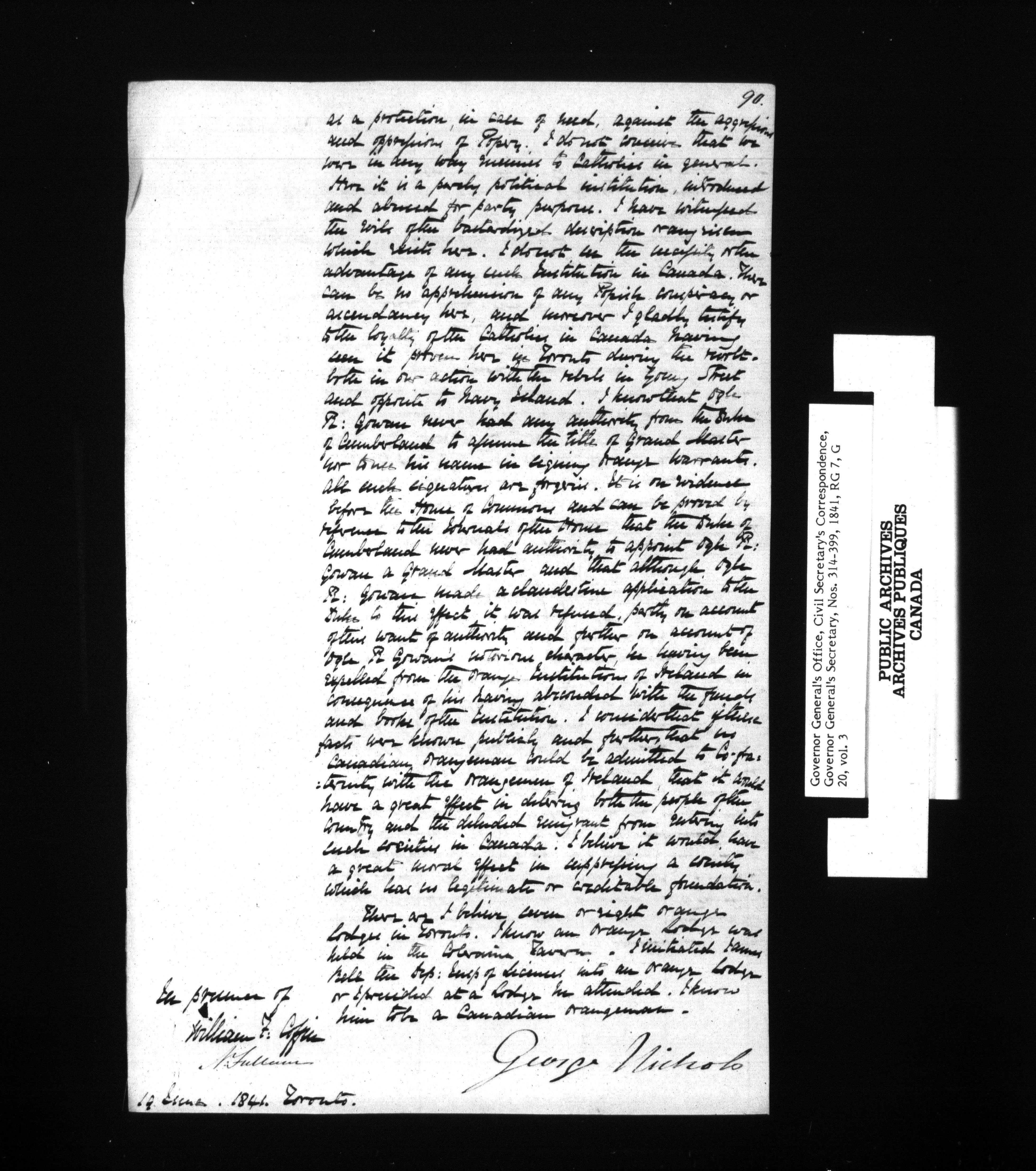 Canada: Governor General's Office, Civil Secretary's correspondence [Province of Canada] - 1348