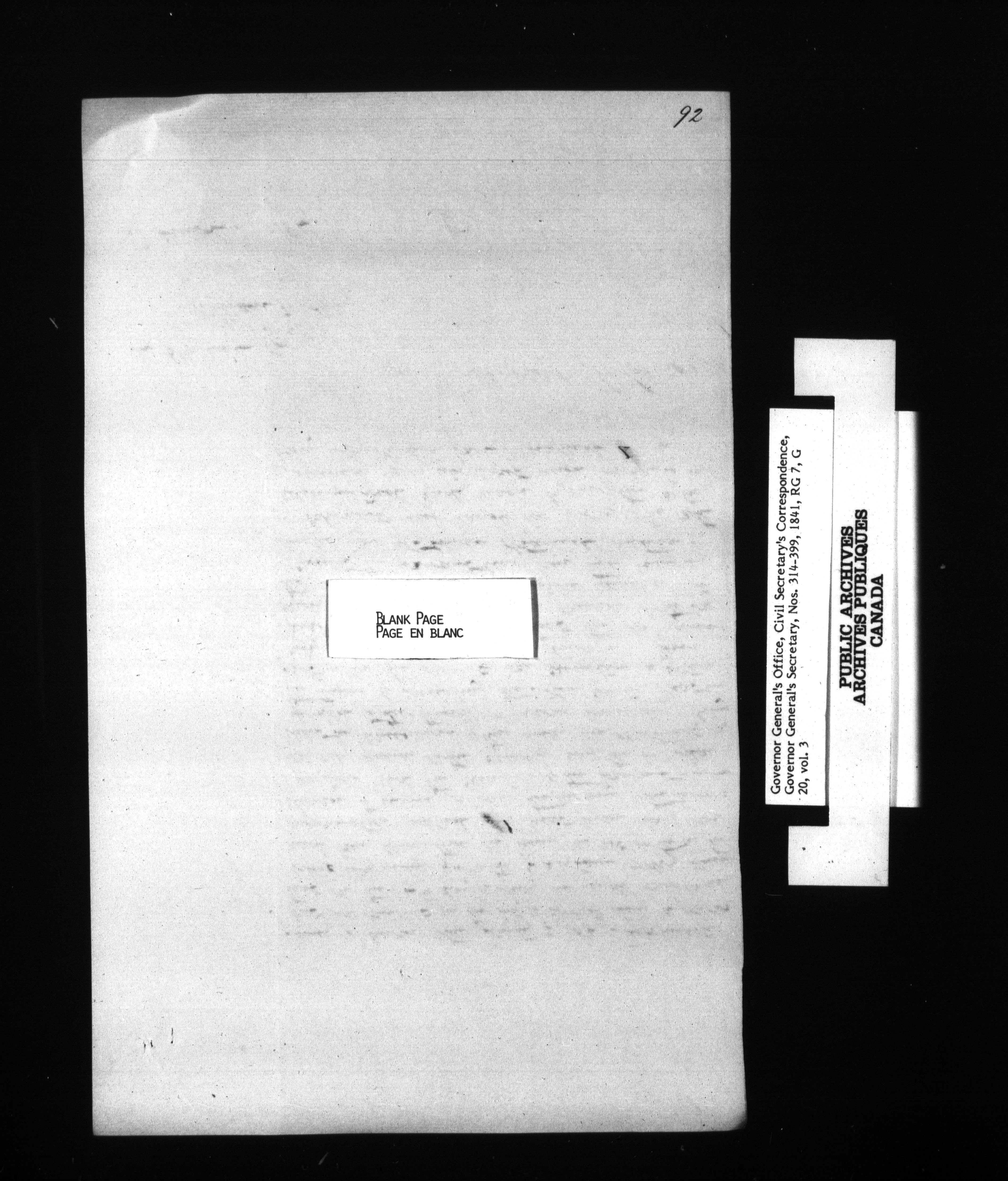 Canada: Governor General's Office, Civil Secretary's correspondence [Province of Canada] - 1348