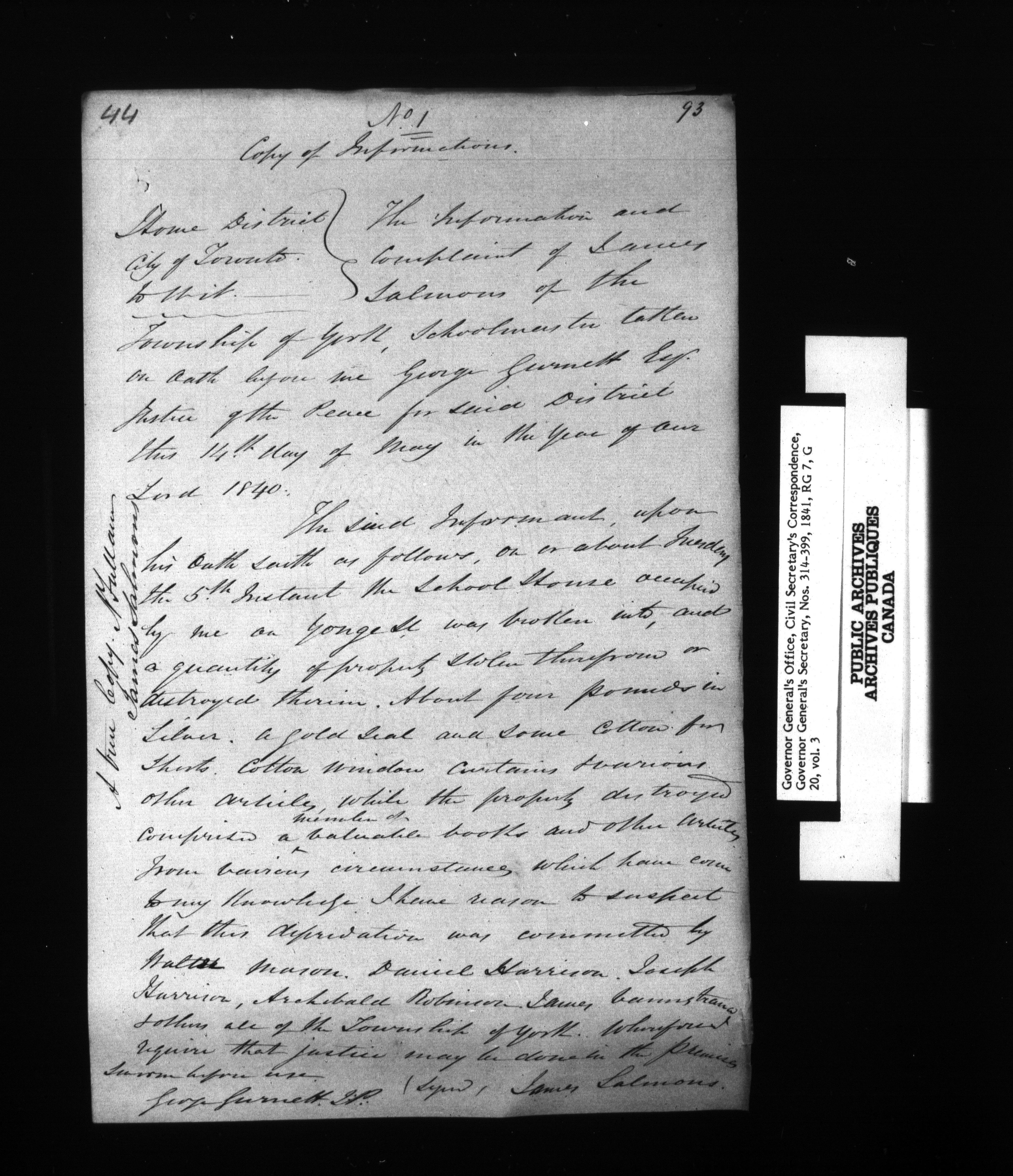 Canada: Governor General's Office, Civil Secretary's correspondence [Province of Canada] - 1348