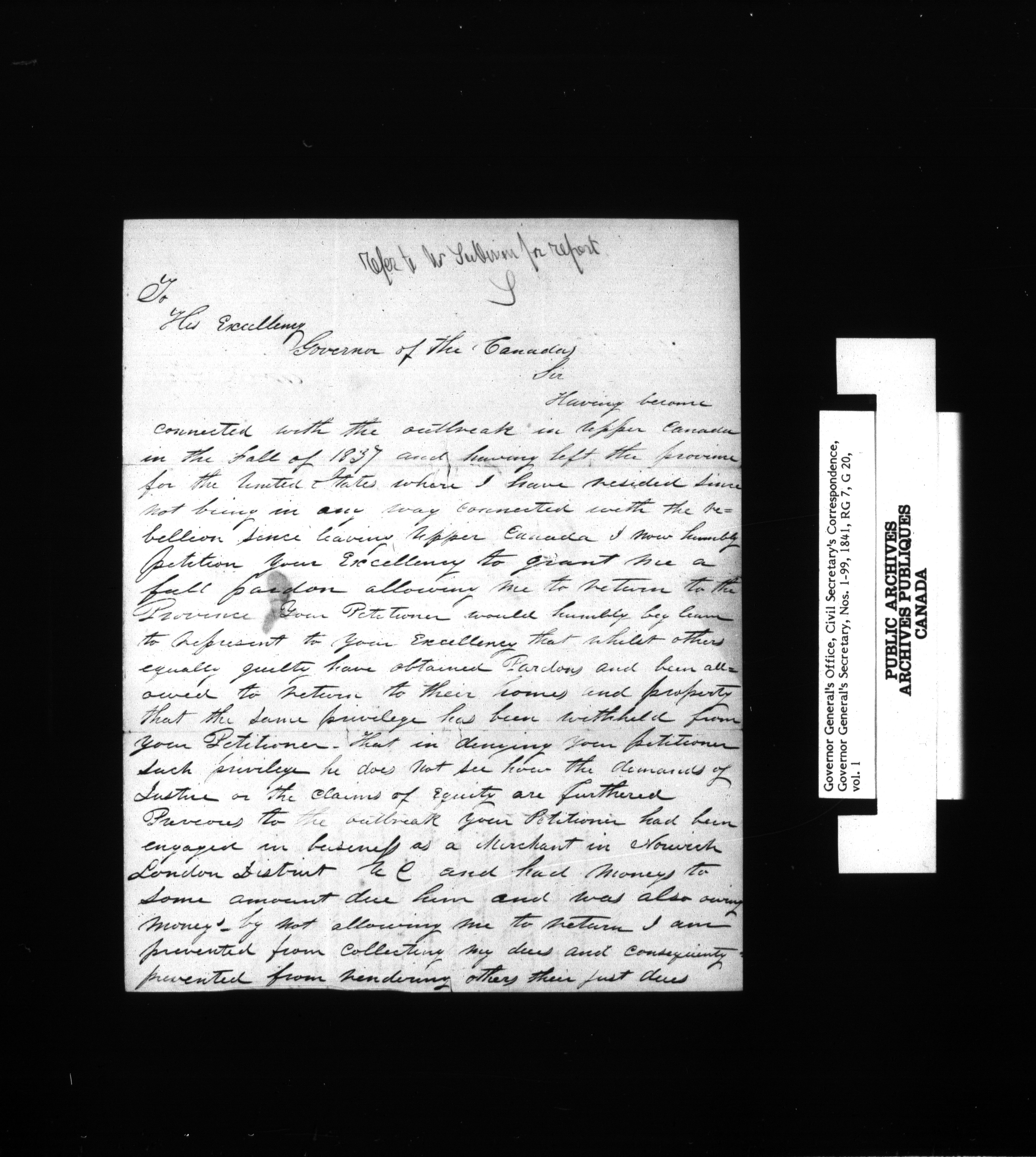 Canada: Governor General's Office, Civil Secretary's correspondence [Province of Canada] - 1348