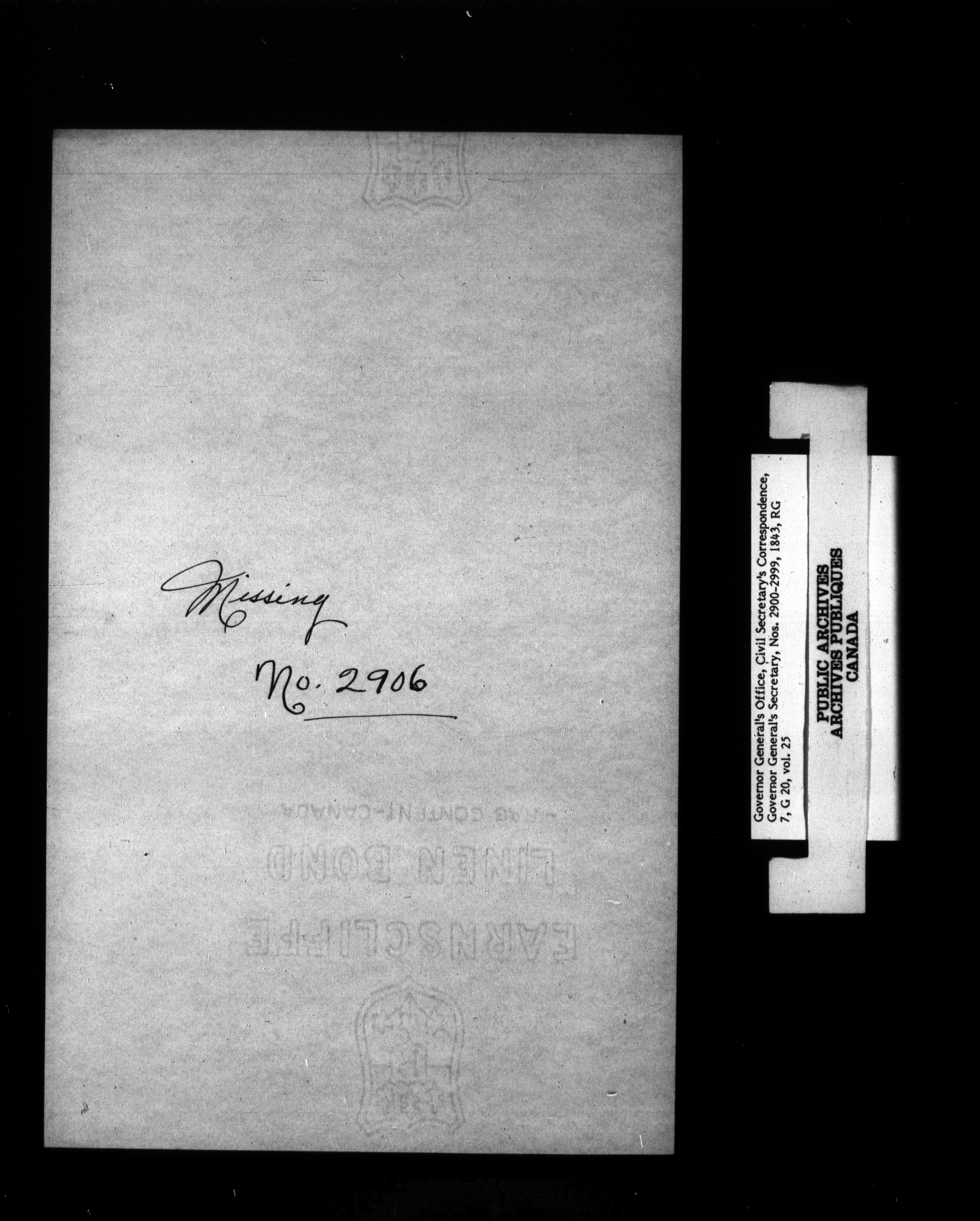 Canada: Governor General's Office, Civil Secretary's correspondence [Province of Canada] - 1354