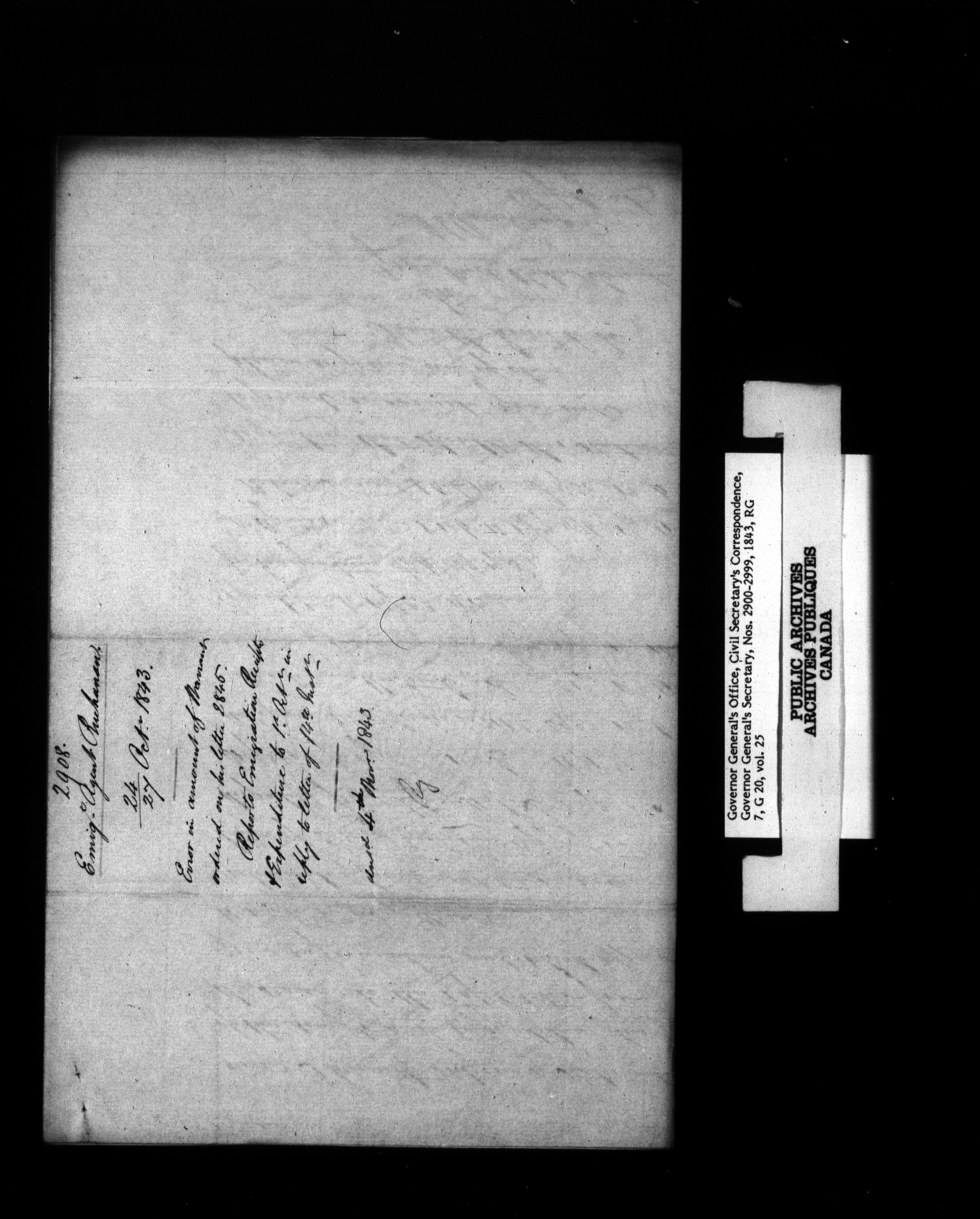 Canada: Governor General's Office, Civil Secretary's correspondence [Province of Canada] - 1354