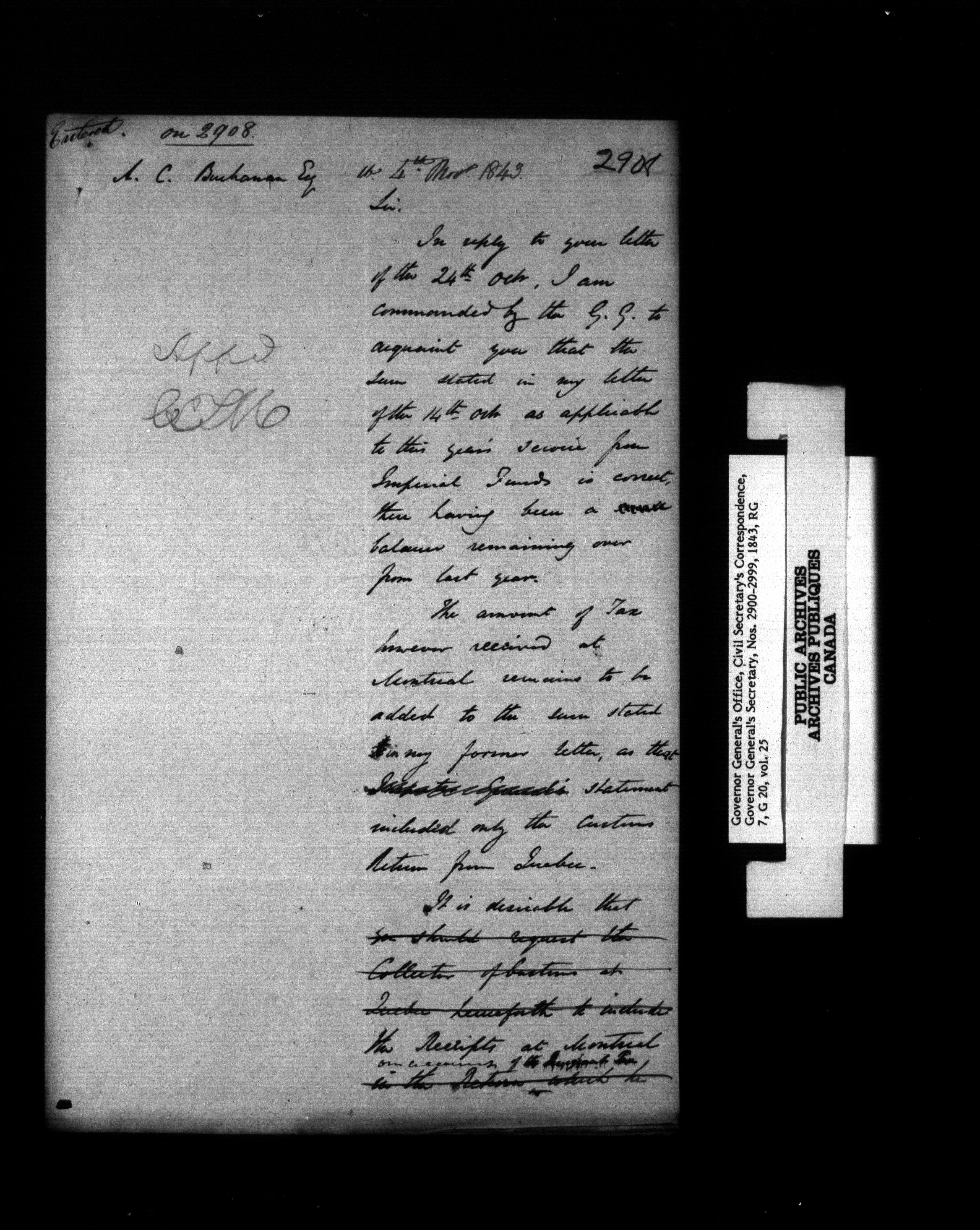 Canada: Governor General's Office, Civil Secretary's correspondence [Province of Canada] - 1354