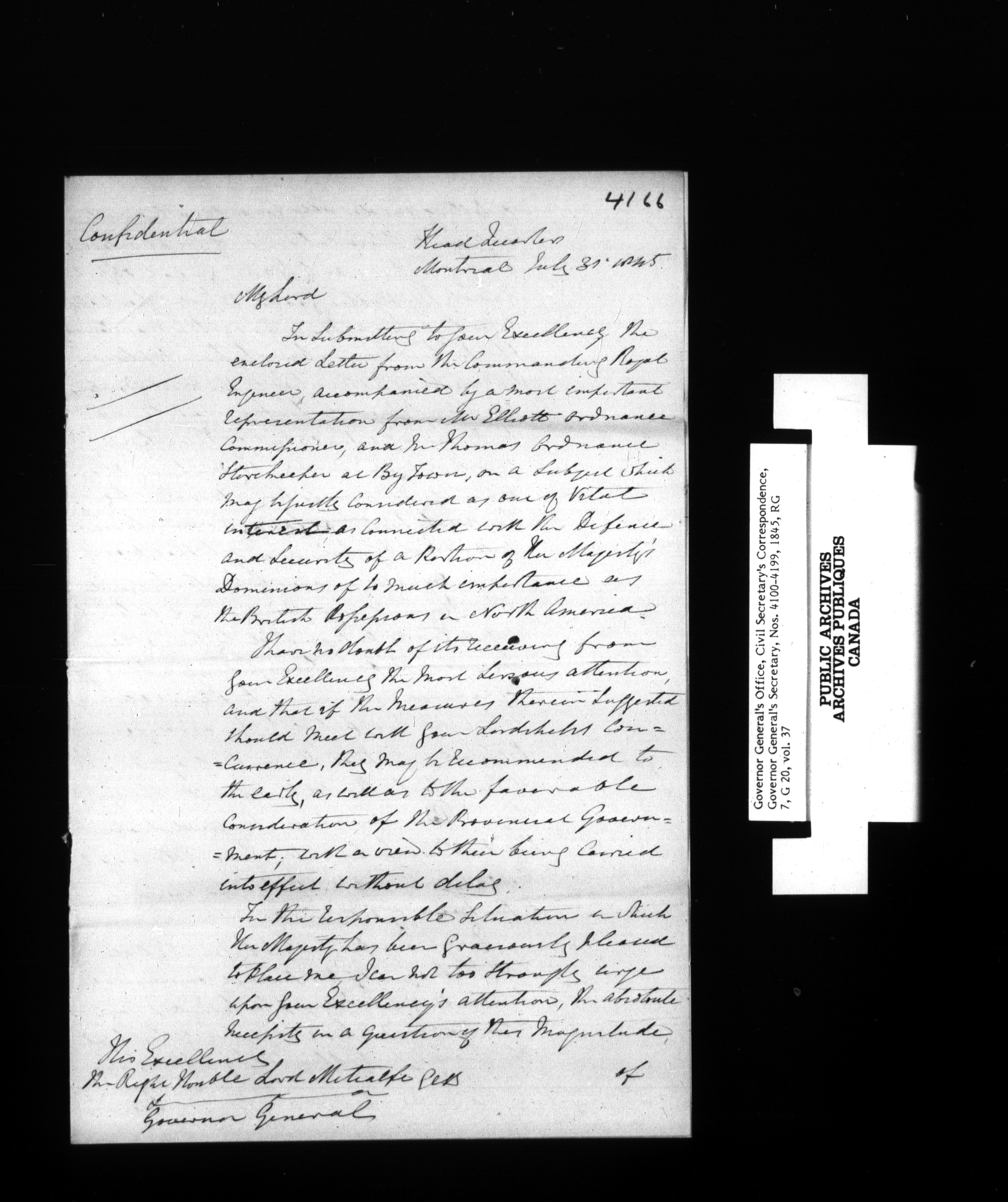 Canada: Governor General's Office, Civil Secretary's correspondence [Province of Canada] - 1357
