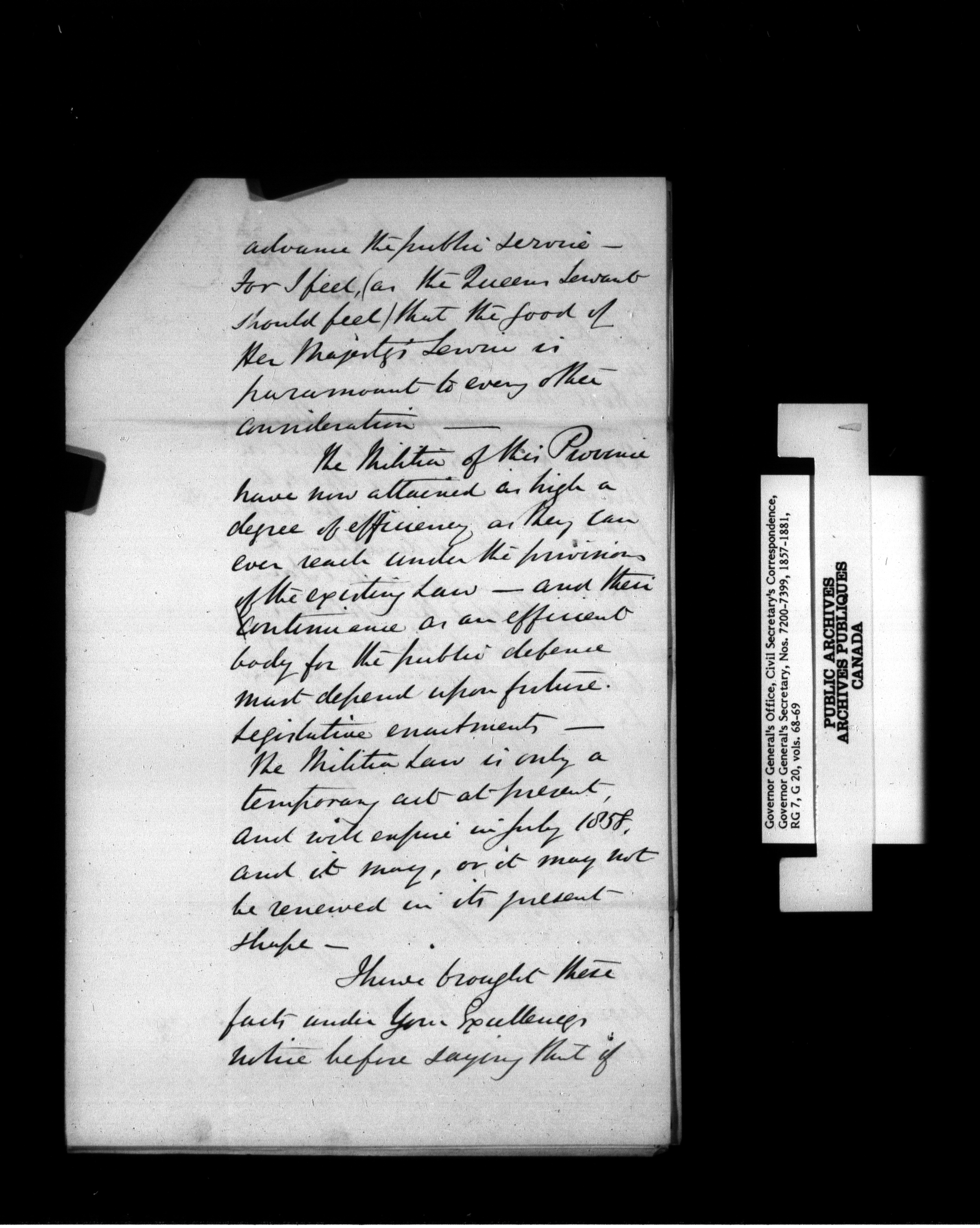 Canada: Governor General's Office, Civil Secretary's correspondence [Province of Canada] - 1366