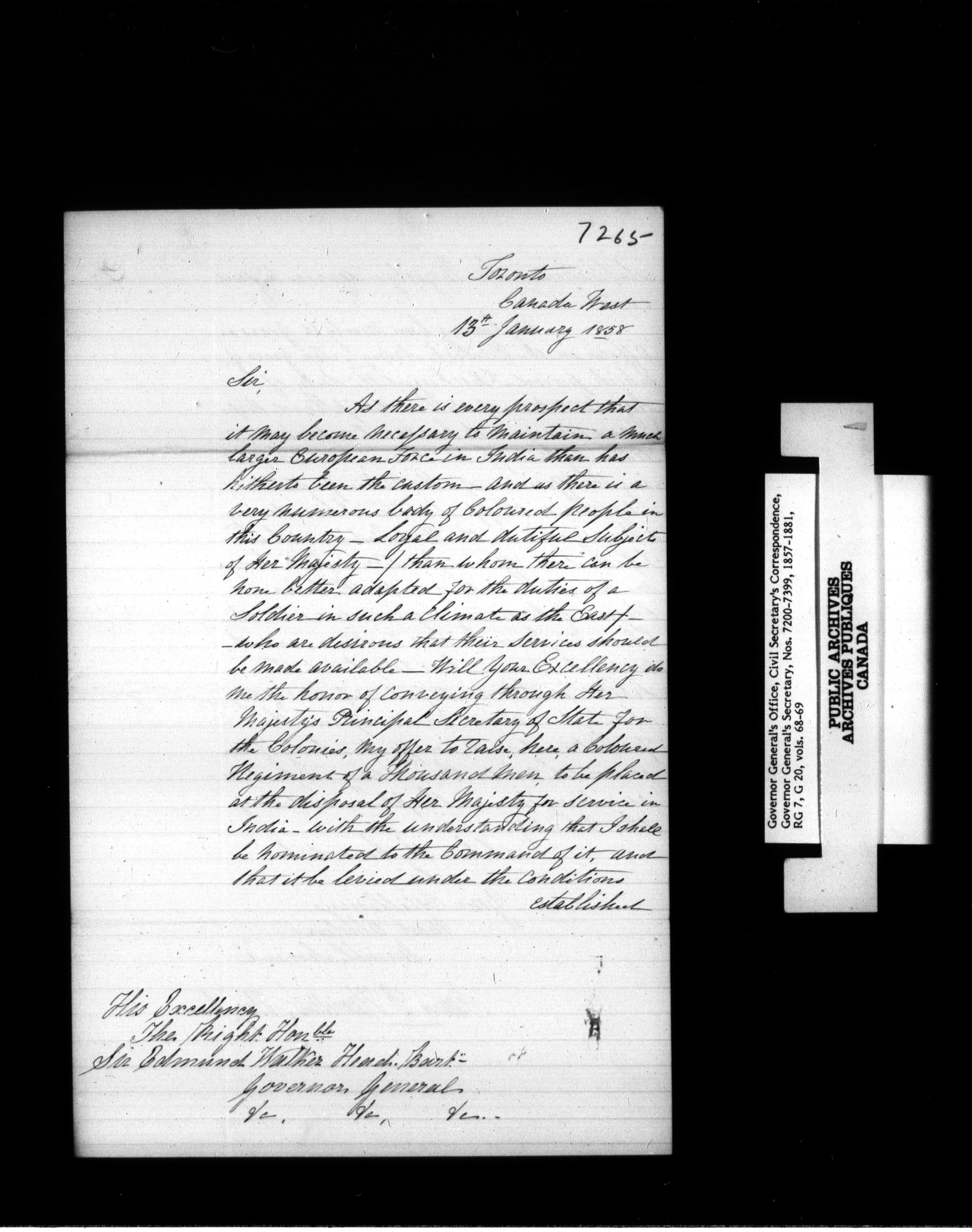 Canada: Governor General's Office, Civil Secretary's correspondence [Province of Canada] - 1366