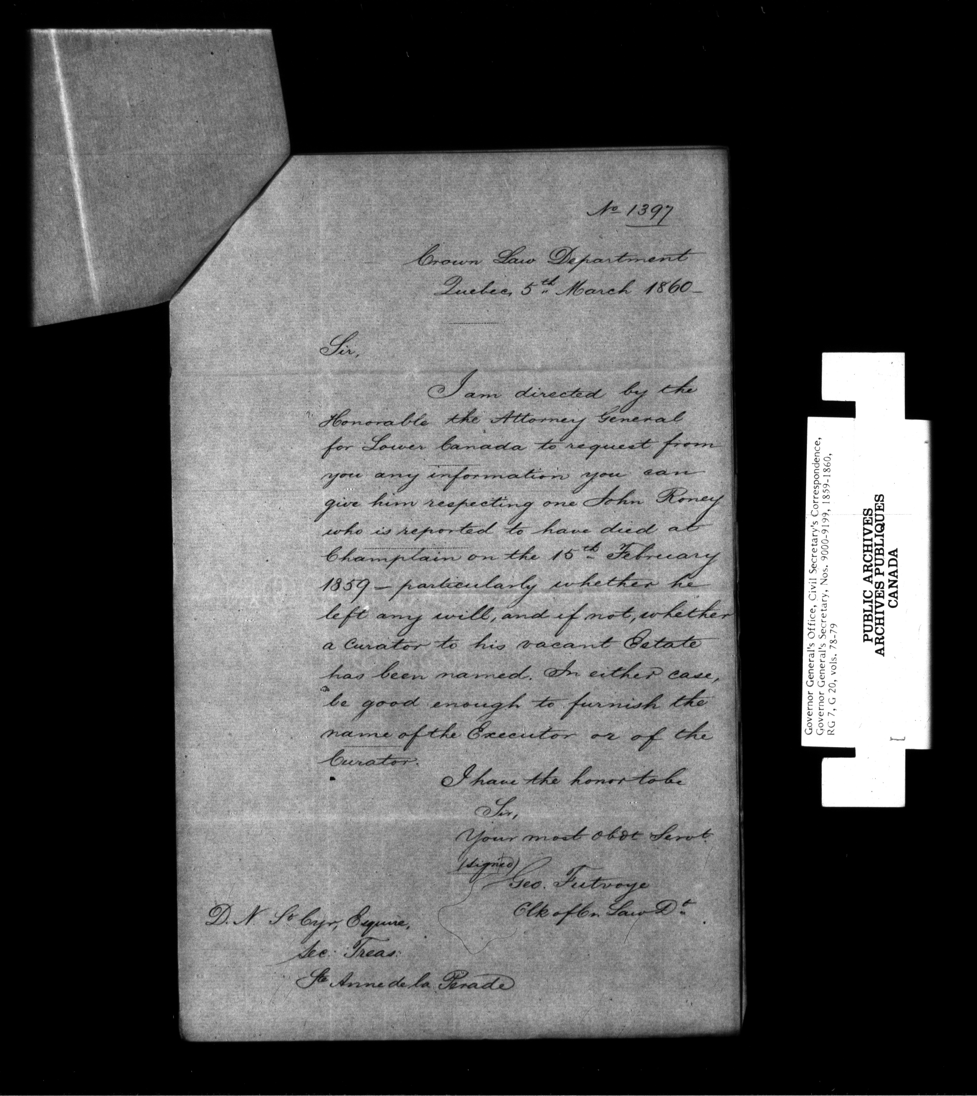 Canada: Governor General's Office, Civil Secretary's correspondence [Province of Canada] - 1368