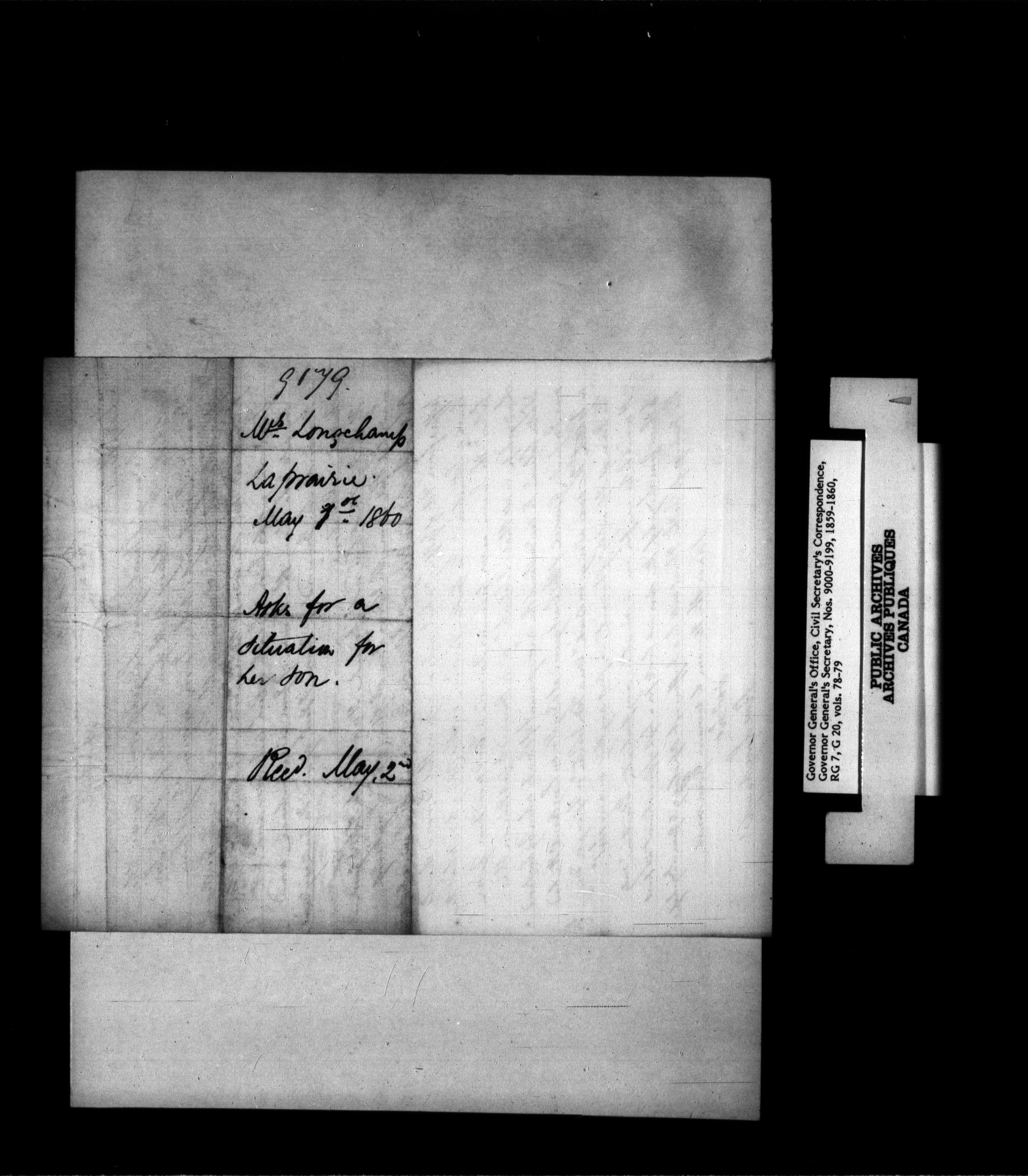 Canada: Governor General's Office, Civil Secretary's correspondence [Province of Canada] - 1369