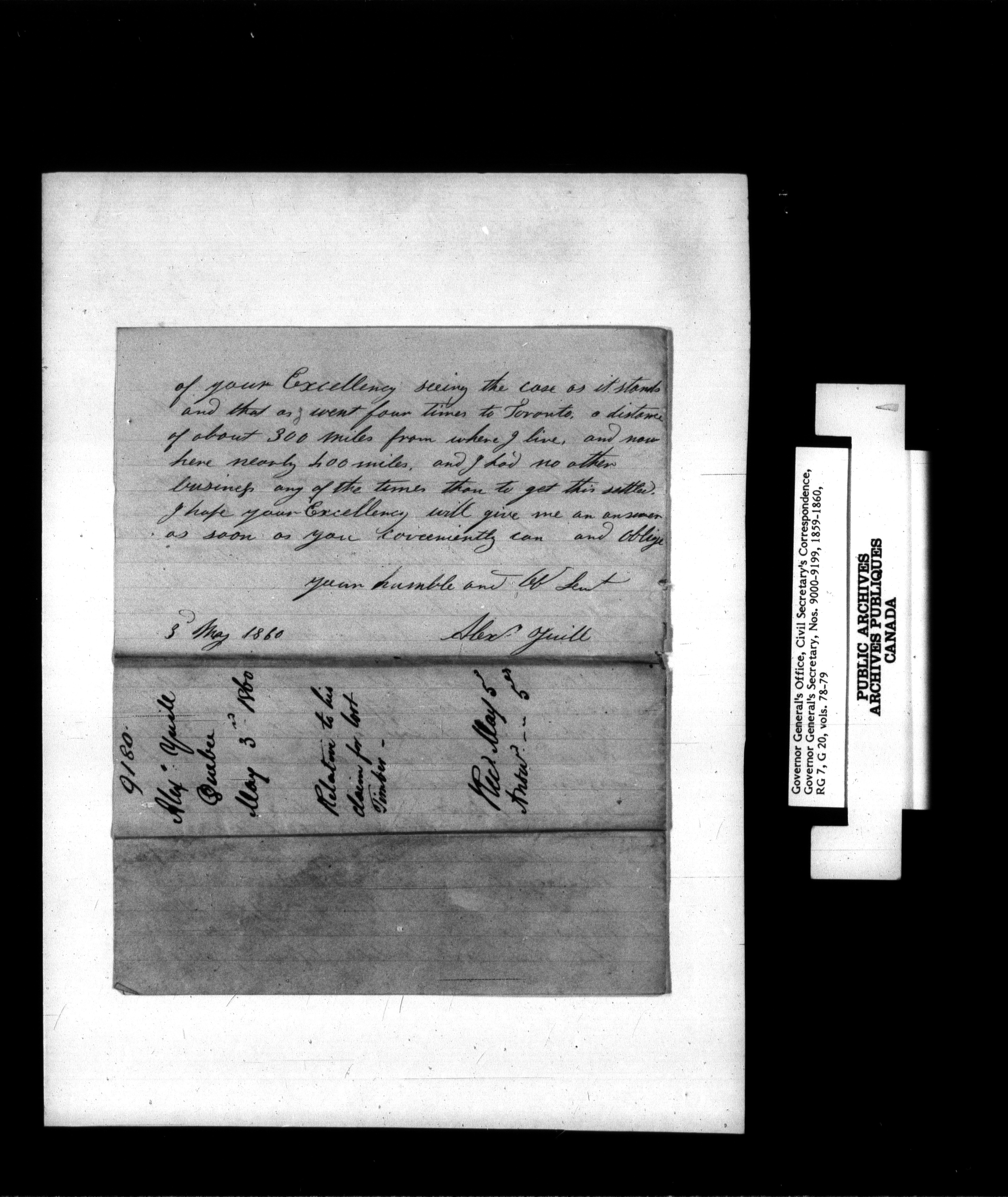 Canada: Governor General's Office, Civil Secretary's correspondence [Province of Canada] - 1369