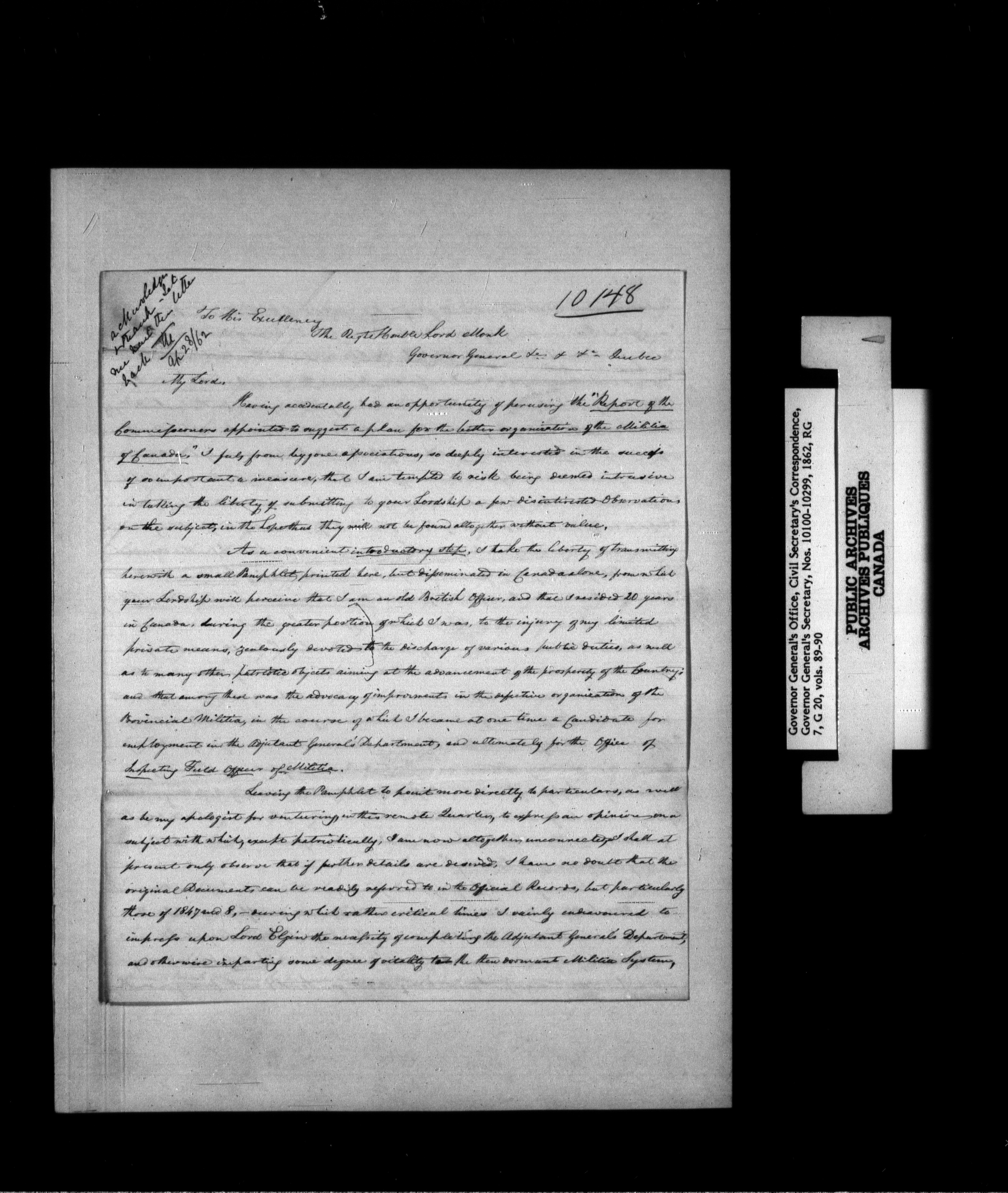 Canada: Governor General's Office, Civil Secretary's correspondence [Province of Canada] - 1370