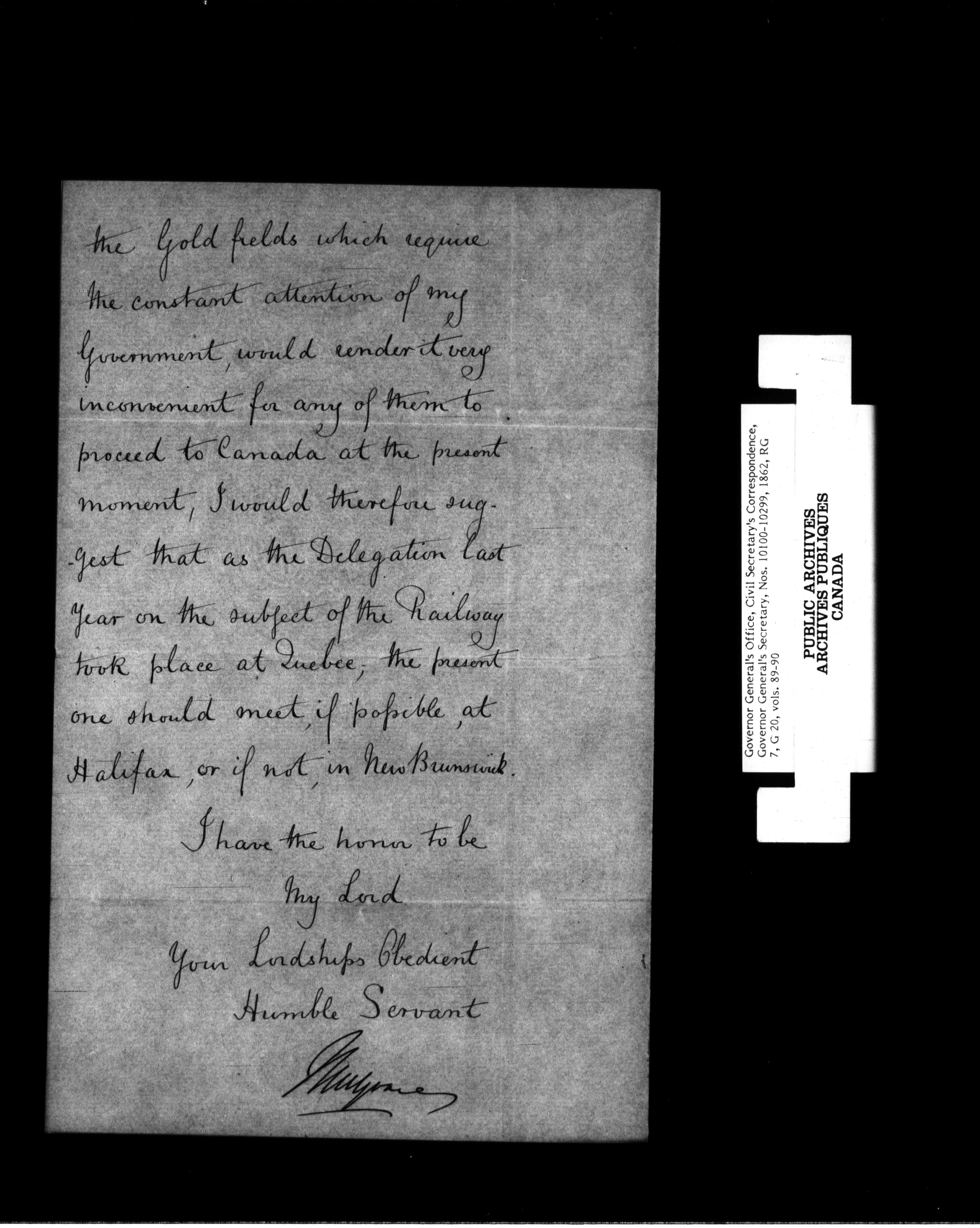 Canada: Governor General's Office, Civil Secretary's correspondence [Province of Canada] - 1371