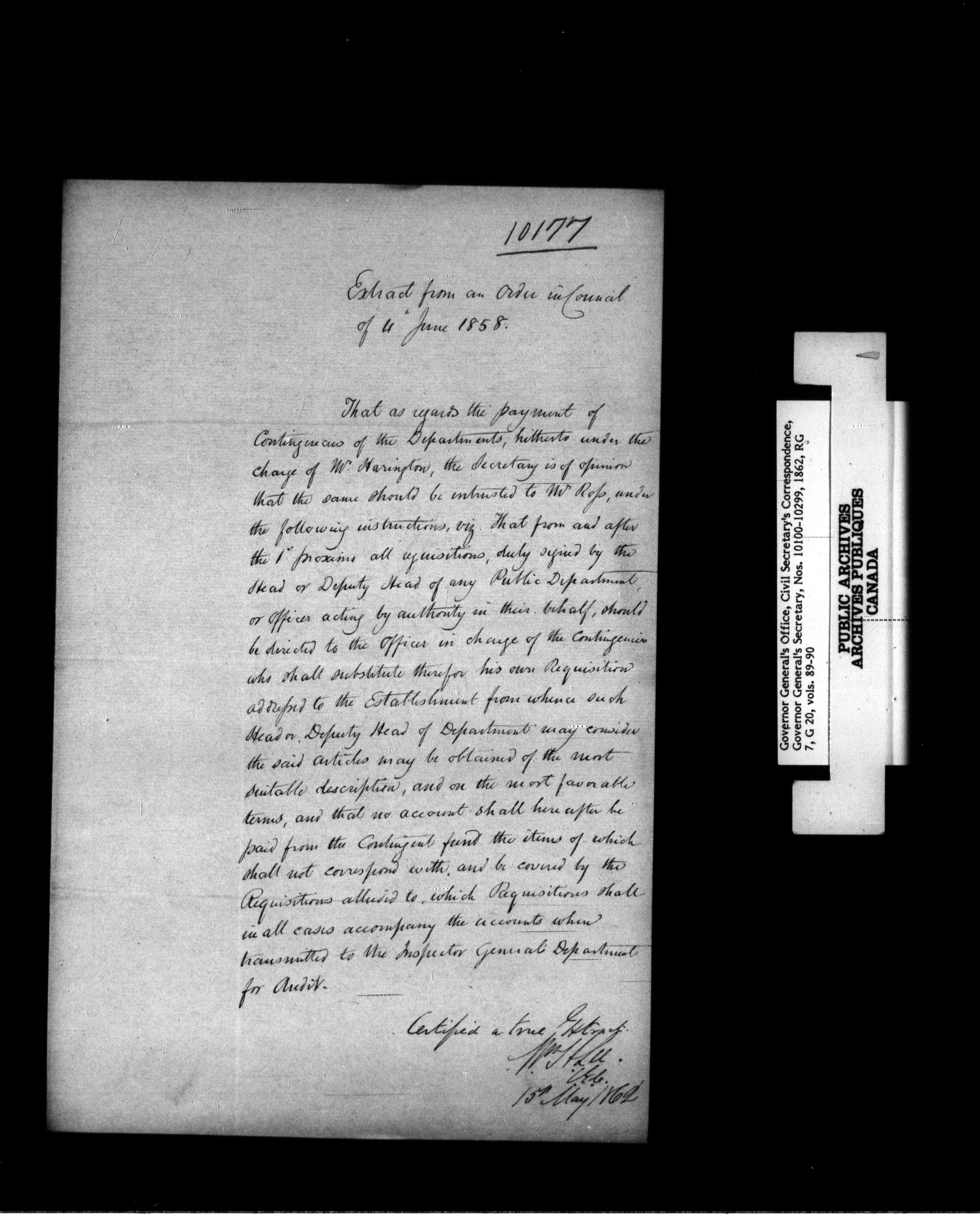 Canada: Governor General's Office, Civil Secretary's correspondence [Province of Canada] - 1371