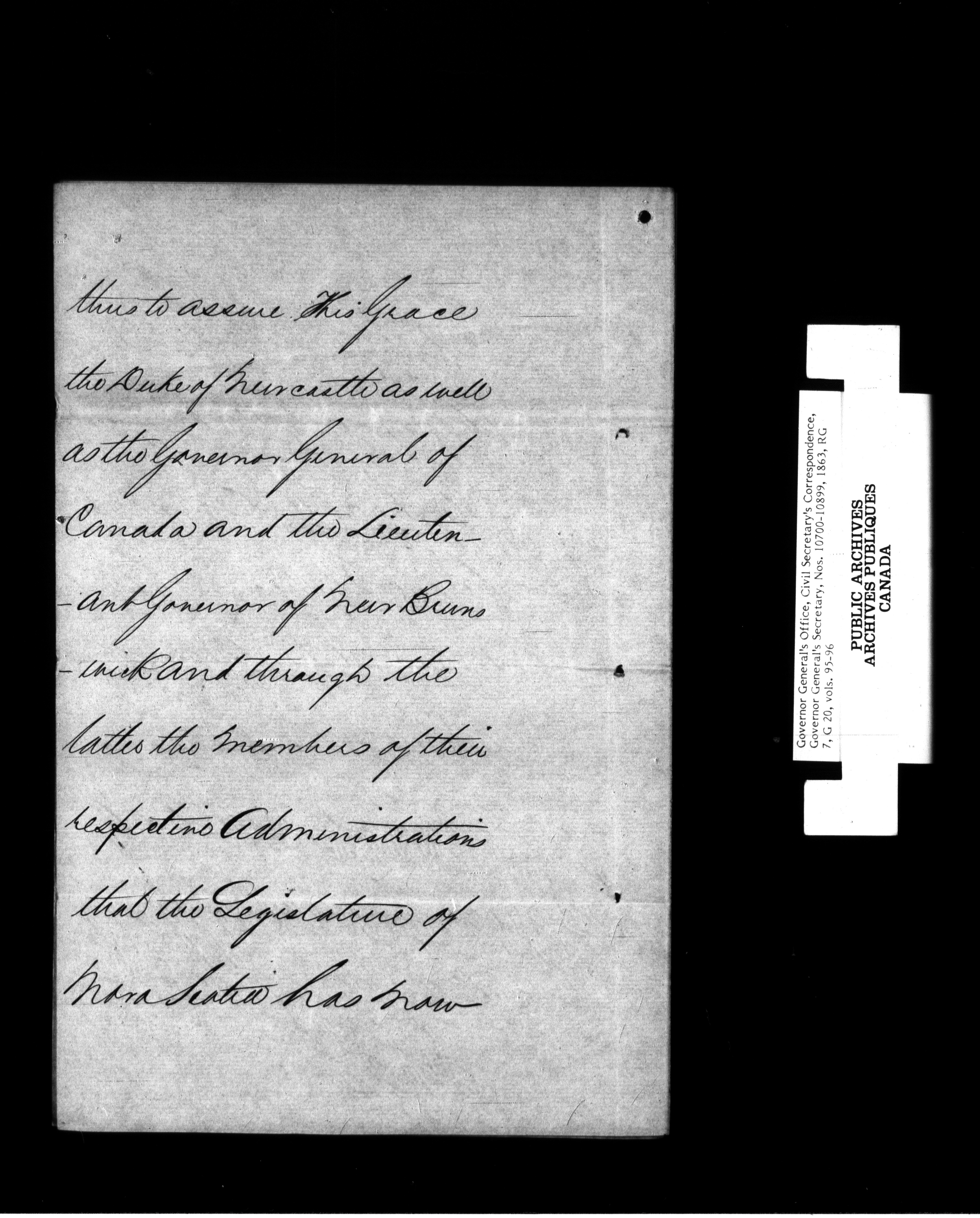 Canada: Governor General's Office, Civil Secretary's correspondence [Province of Canada] - 1372