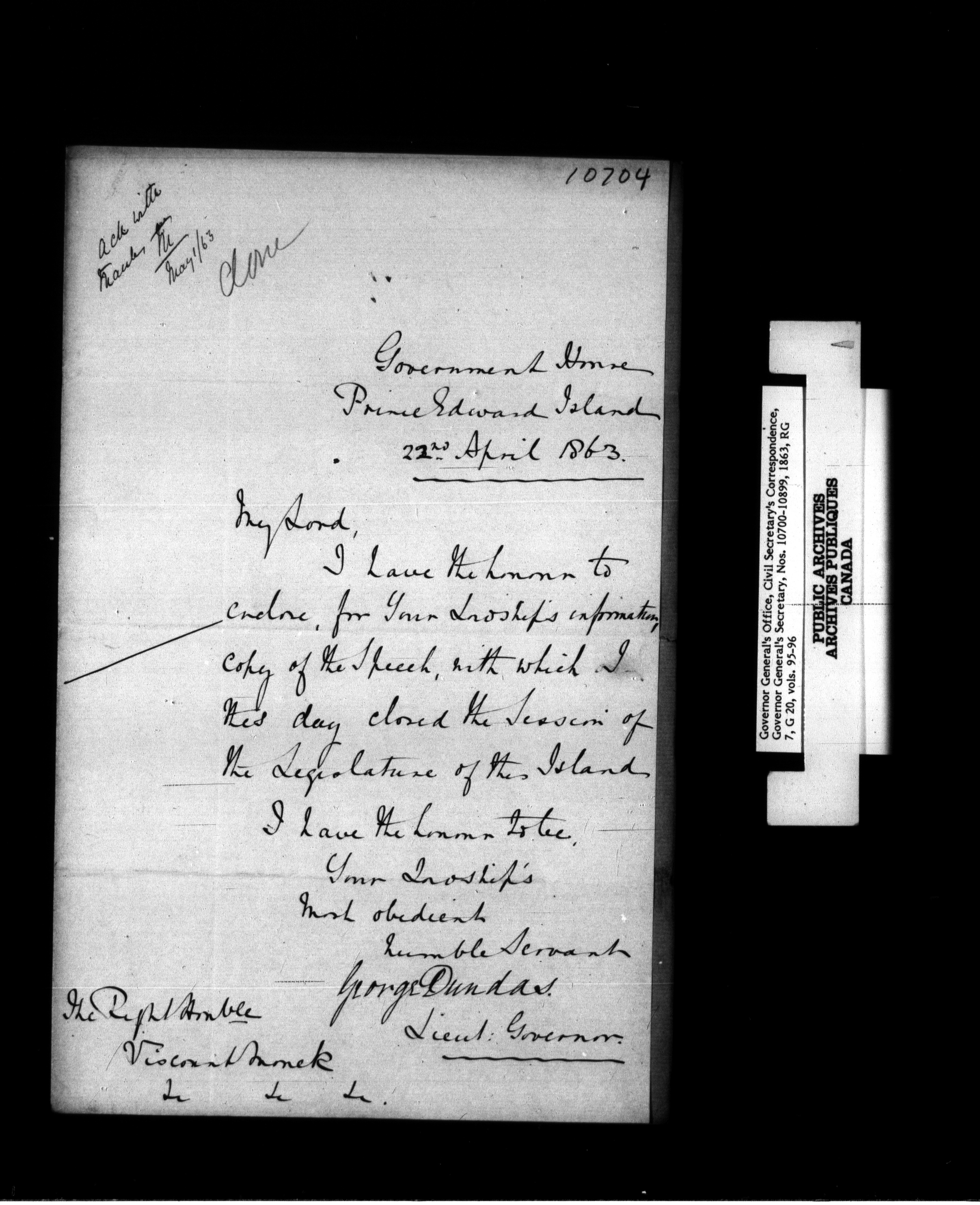 Canada: Governor General's Office, Civil Secretary's correspondence [Province of Canada] - 1372