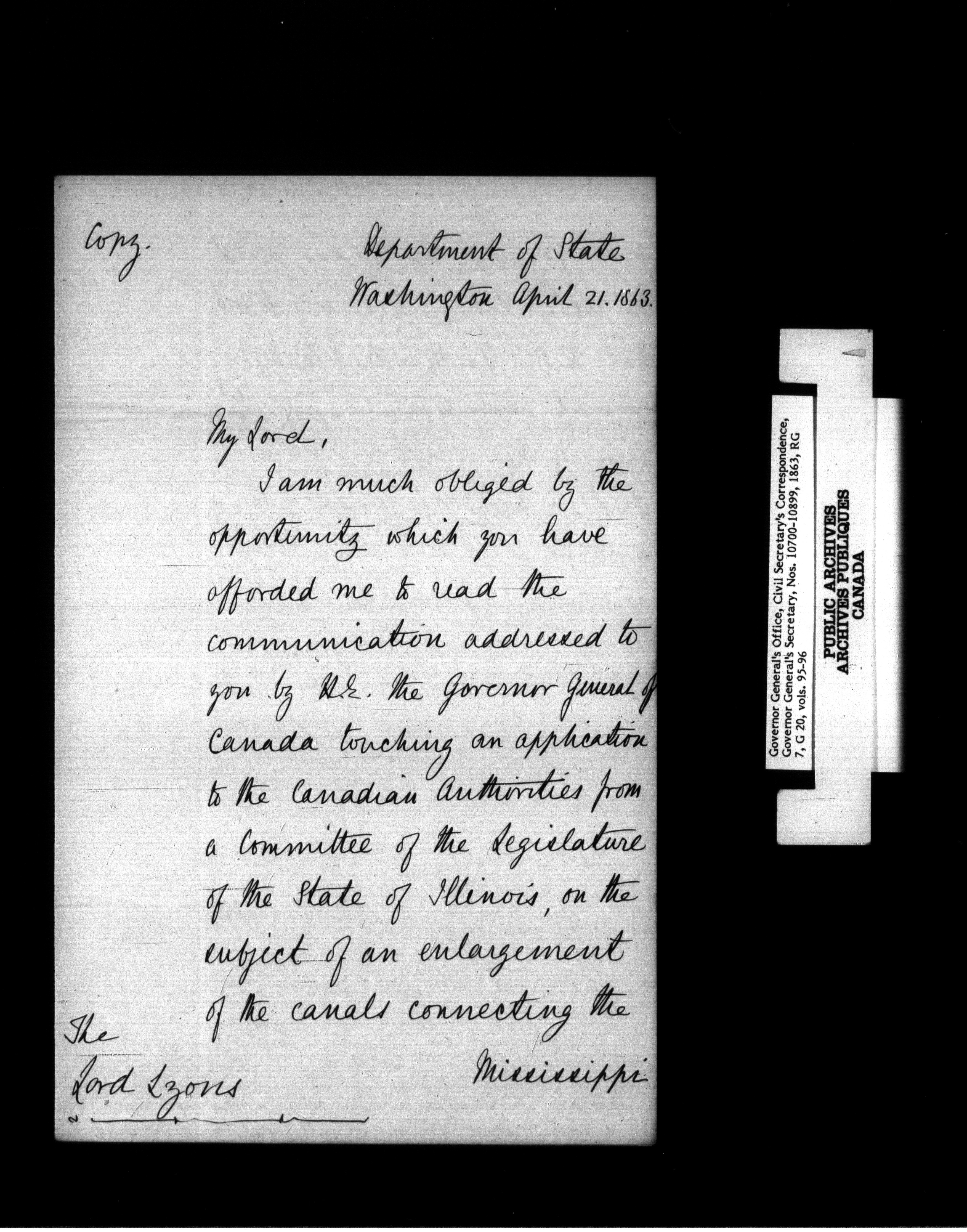 Canada: Governor General's Office, Civil Secretary's correspondence [Province of Canada] - 1372