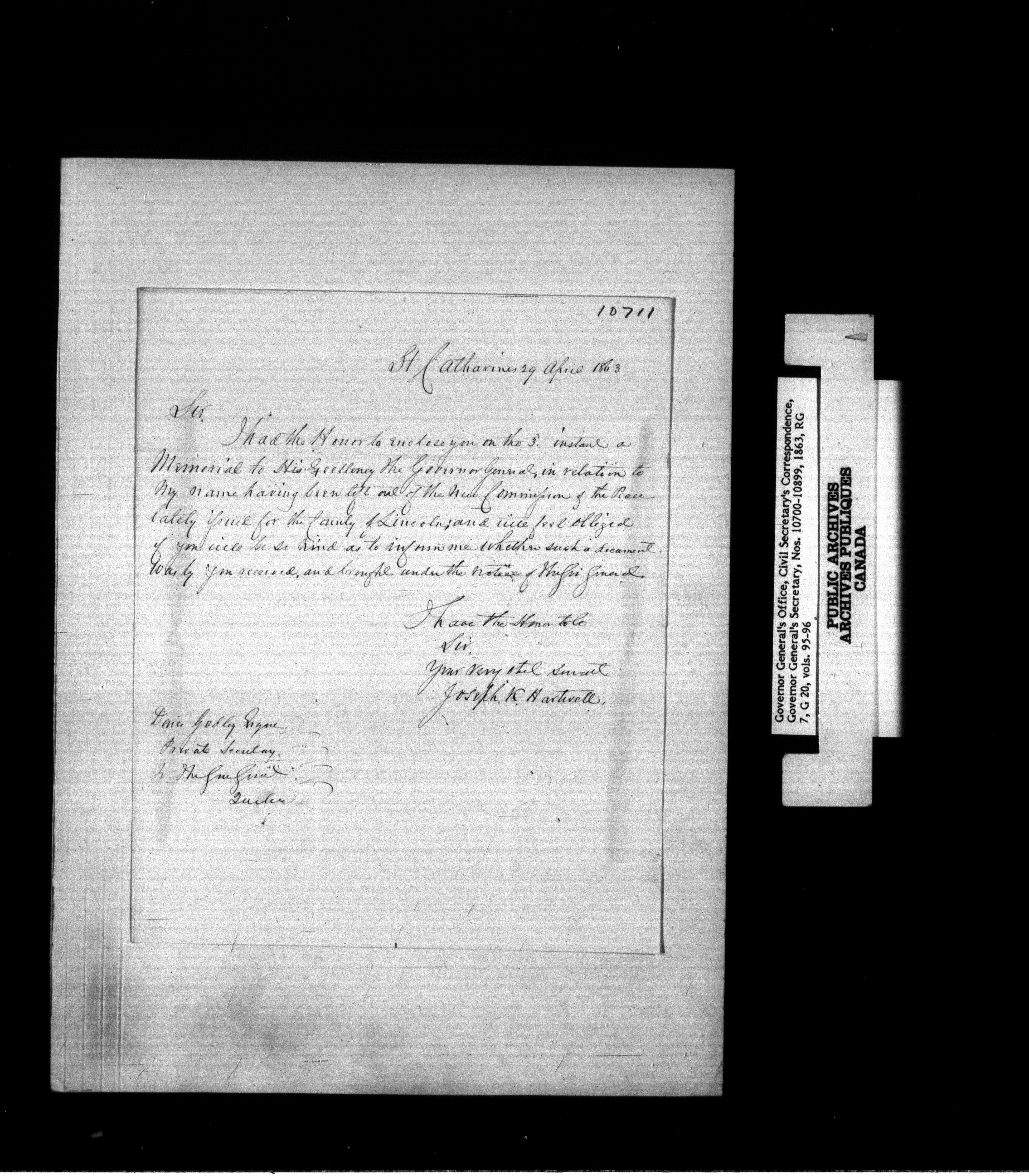 Canada: Governor General's Office, Civil Secretary's correspondence [Province of Canada] - 1372