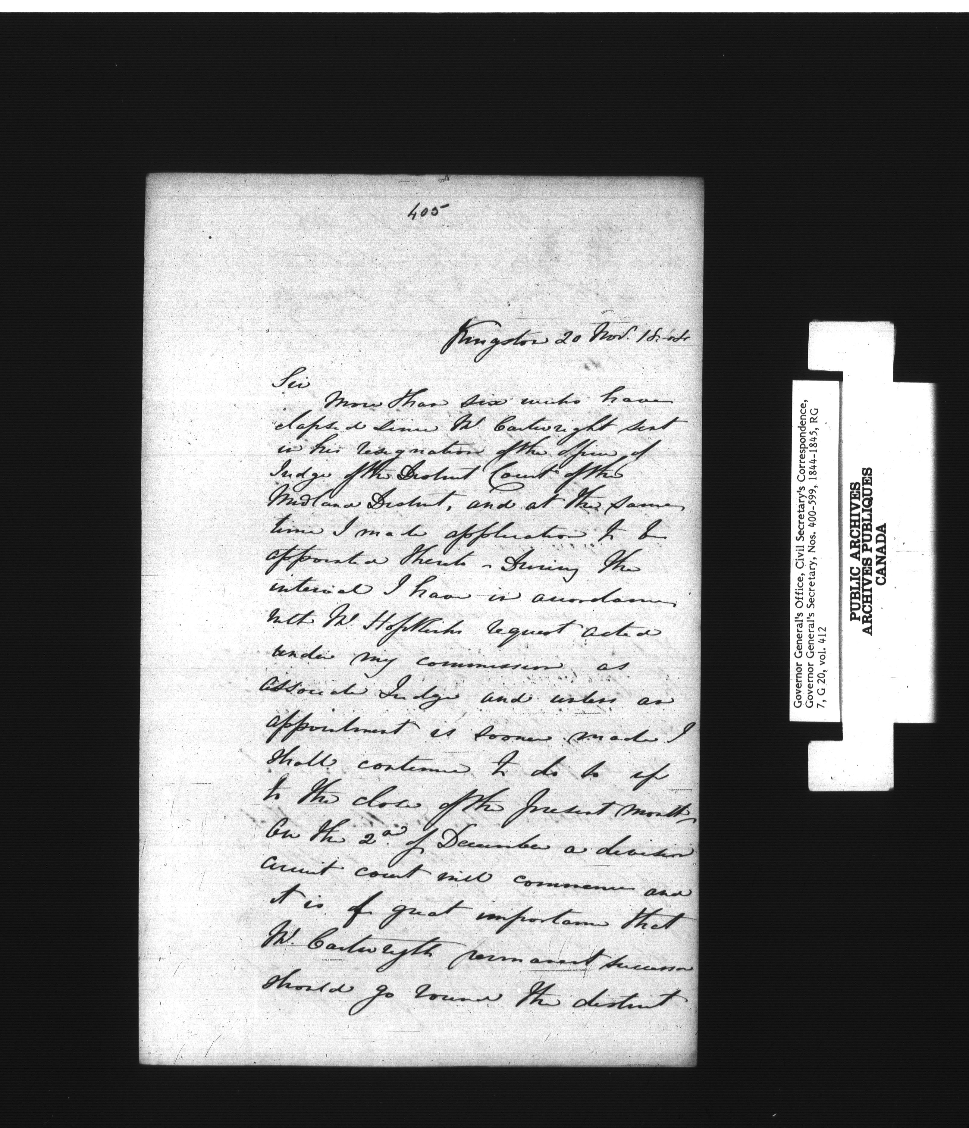 Canada: Governor General's Office : Civil Secretary's correspondence [Province of Canada] - 1376