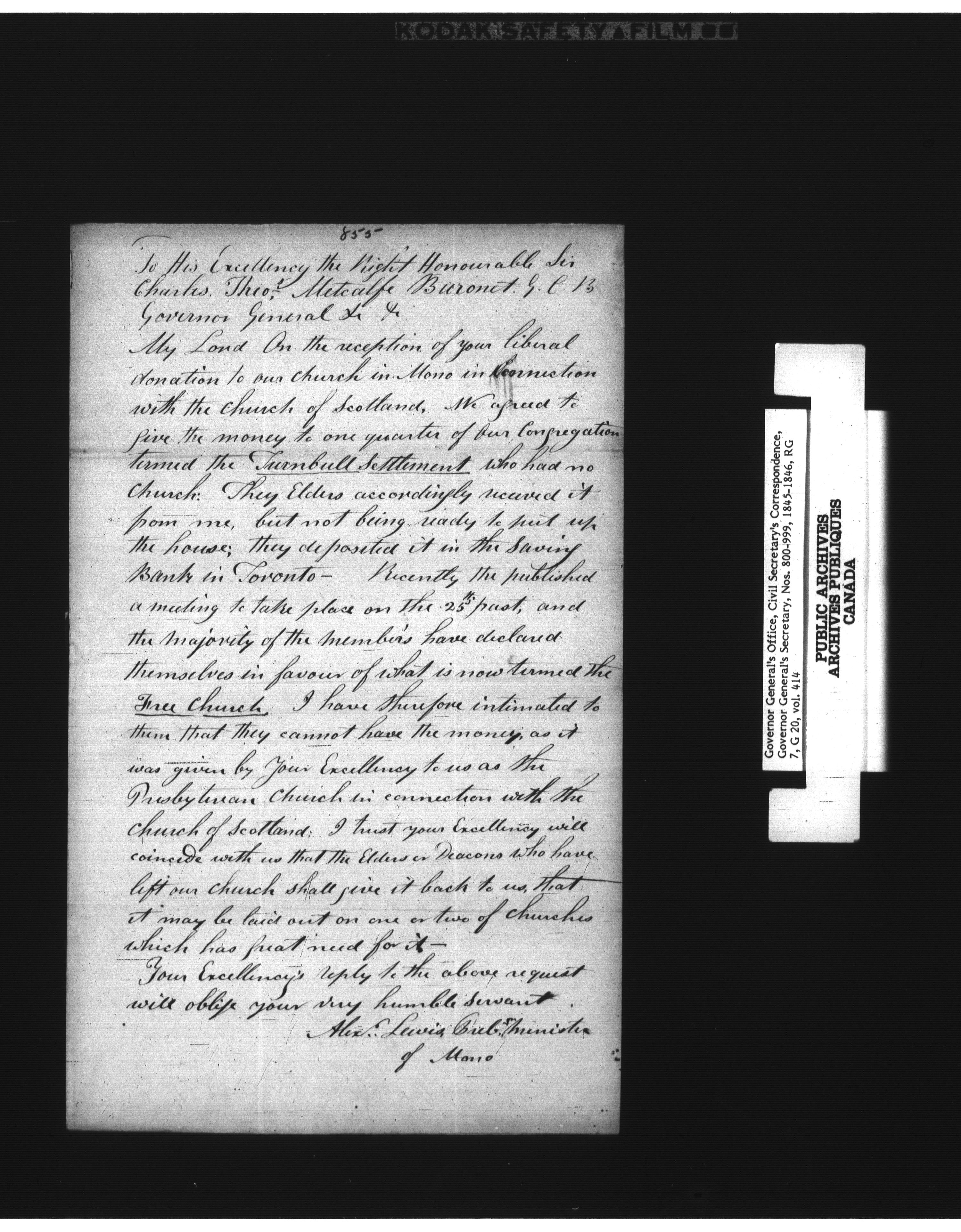 Canada: Governor General's Office : Civil Secretary's correspondence [Province of Canada] - 1377