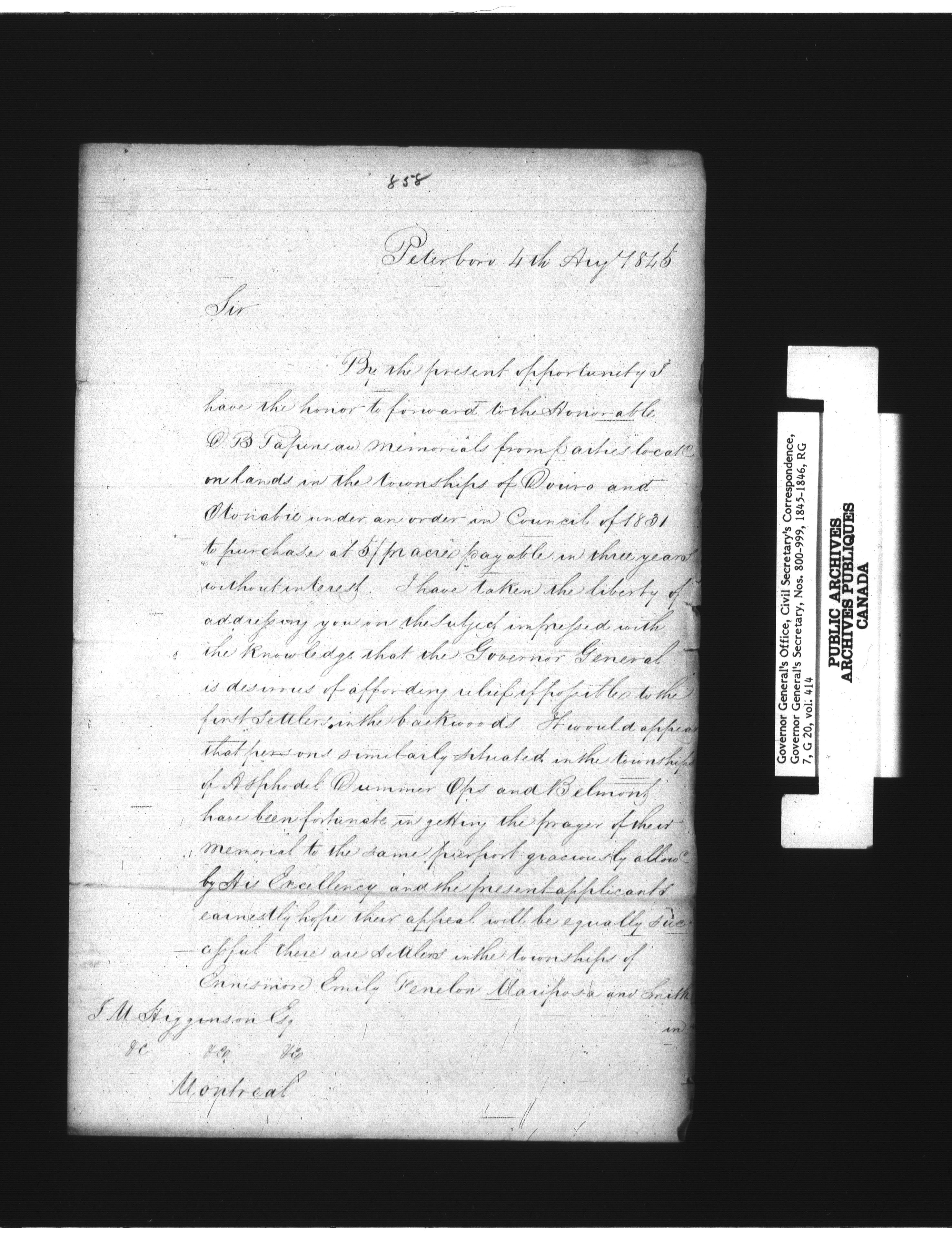 Canada: Governor General's Office : Civil Secretary's correspondence [Province of Canada] - 1377