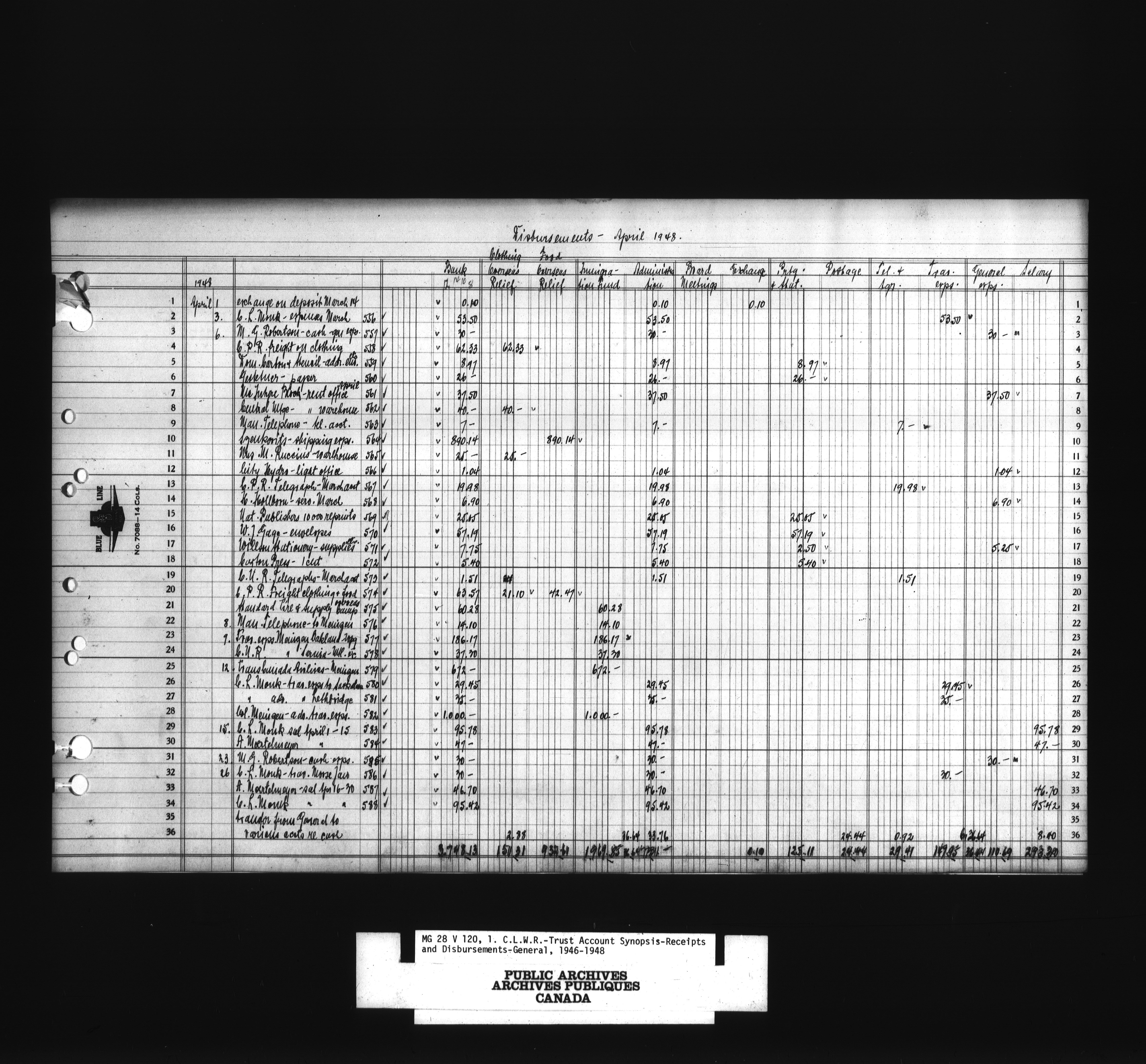 Canadian Lutheran World Relief, trust account synopsis, receipts and disbursements - 1379