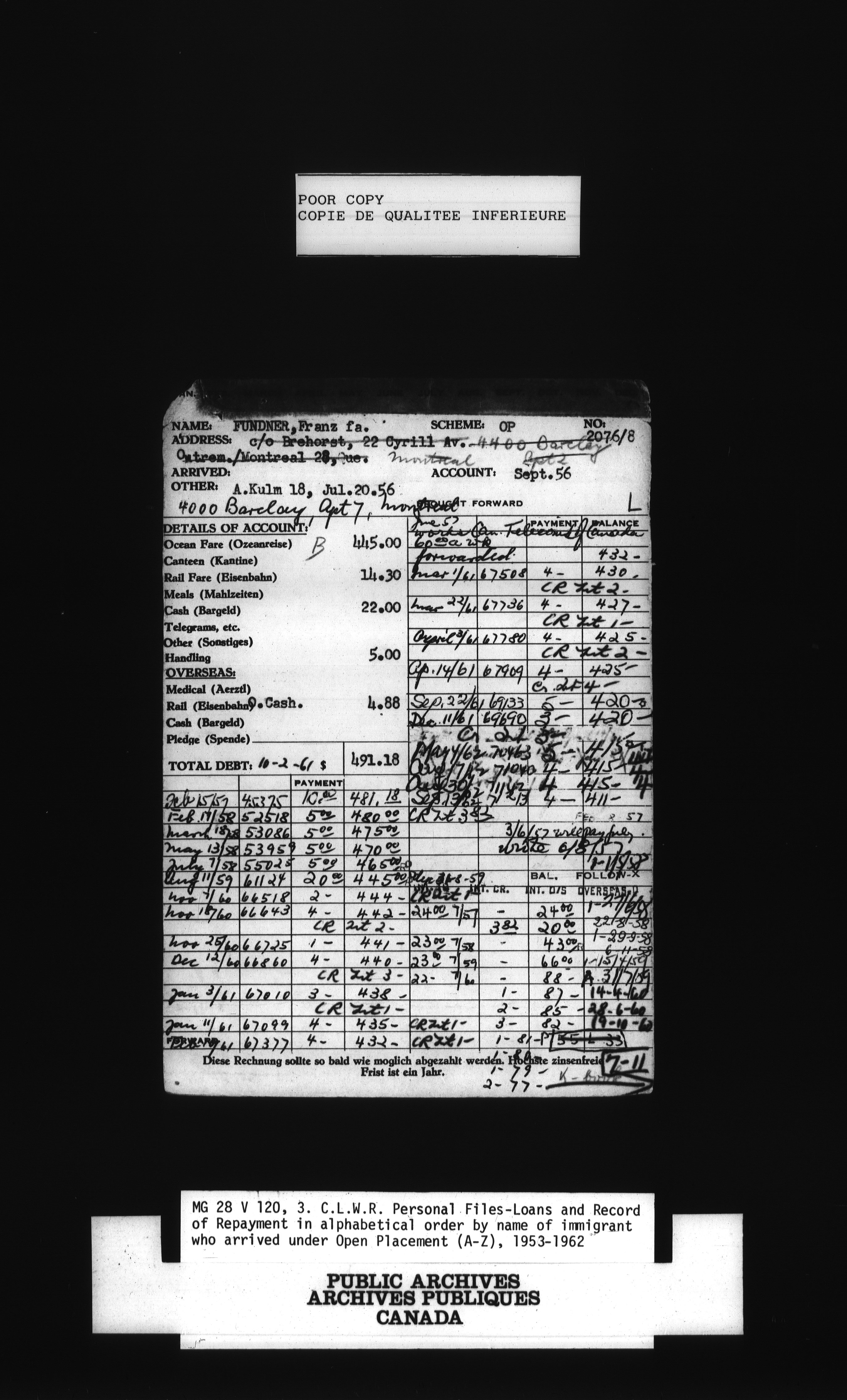 Canadian Lutheran World Relief personnel files, loans and record of repayment in alphabetical order by name of immigrant - 1385