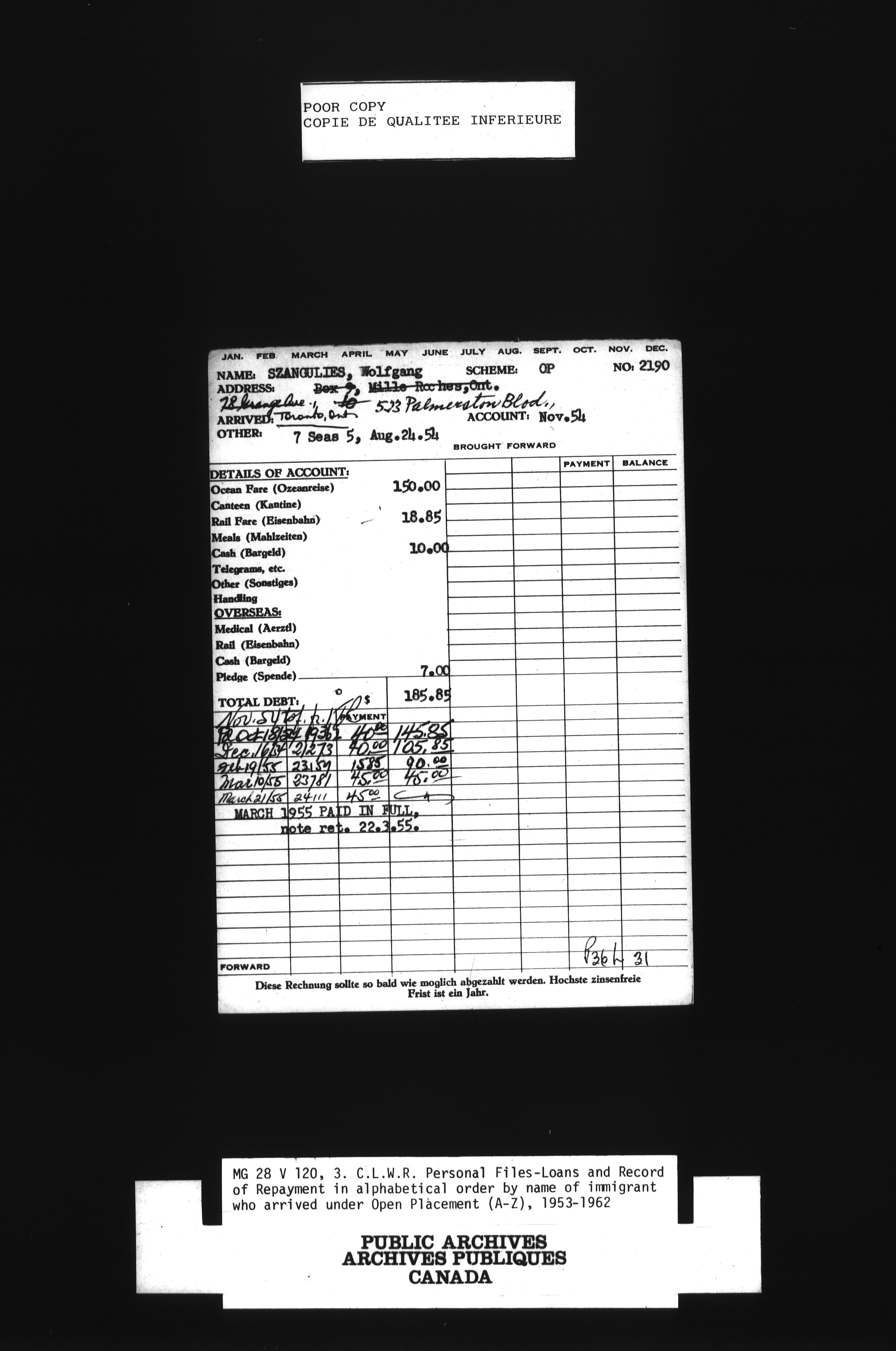 Canadian Lutheran World Relief personnel files, loans and record of repayment in alphabetical order by name of immigrant - 1386