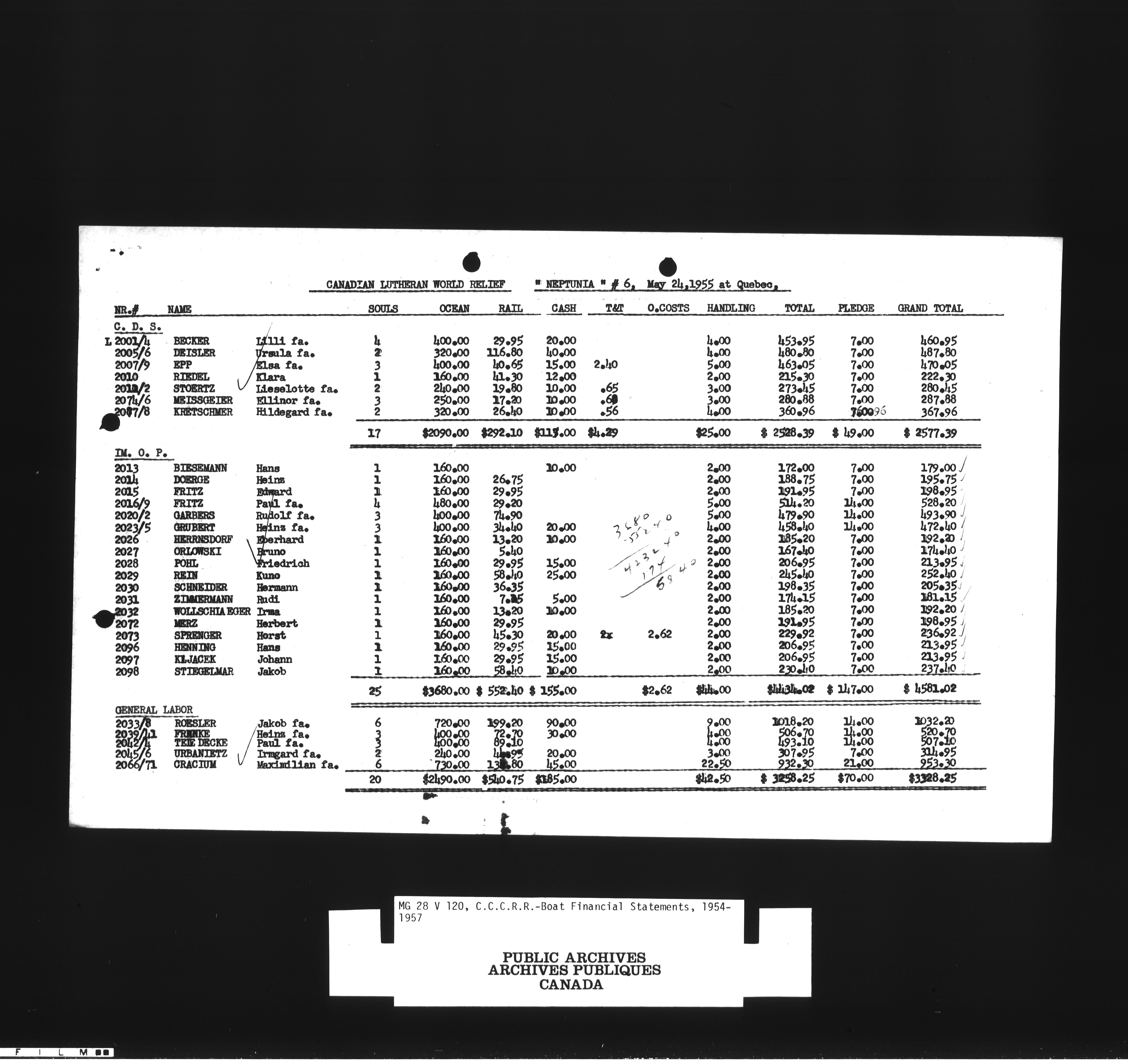 Canadian Lutheran World Relief personnel files, loans and record of repayment in alphabetical order by name of immigrantCanadian Christian Council for resettlement of refugees, boat financial statements - 1389