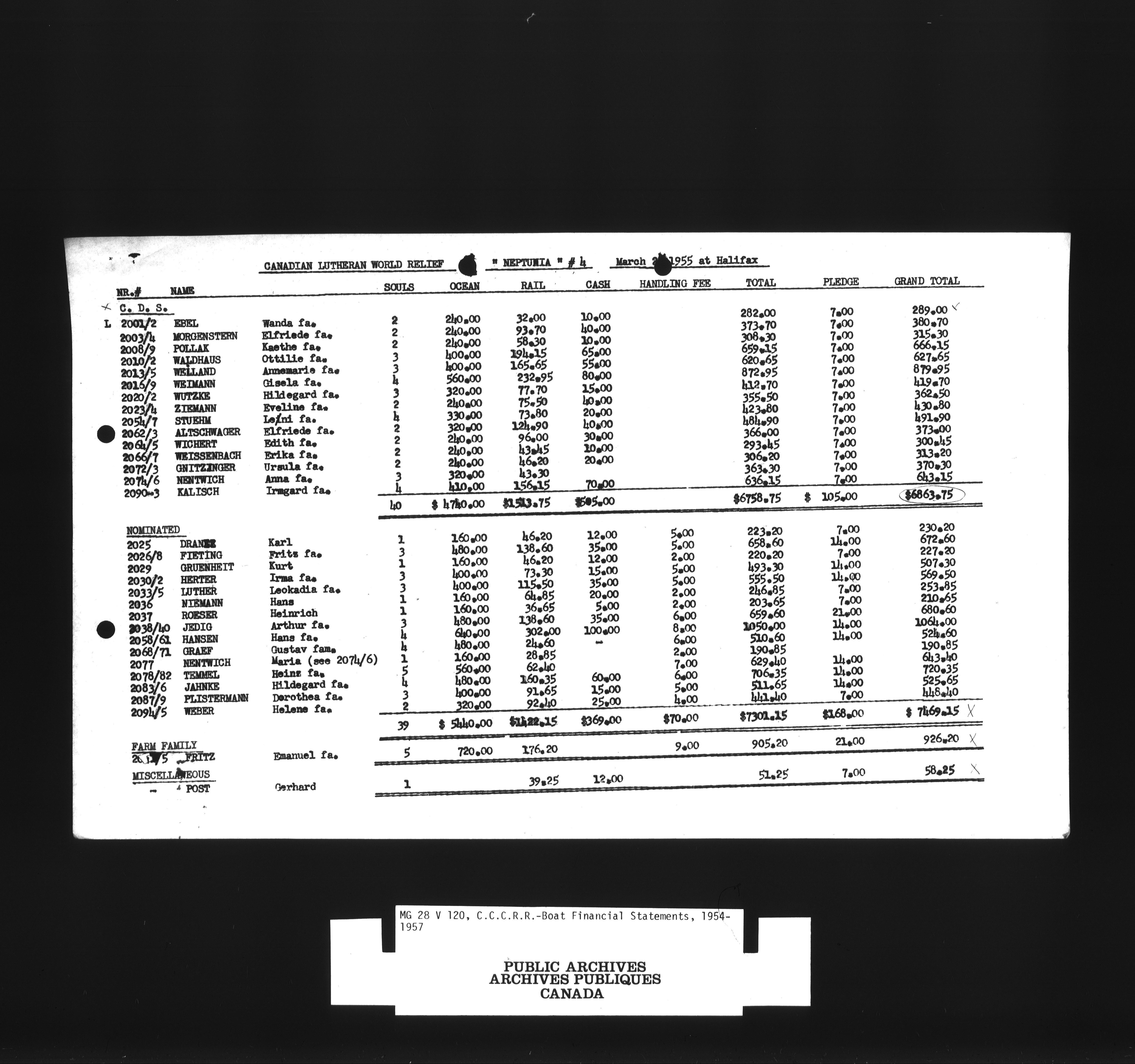 Canadian Lutheran World Relief personnel files, loans and record of repayment in alphabetical order by name of immigrantCanadian Christian Council for resettlement of refugees, boat financial statements - 1389