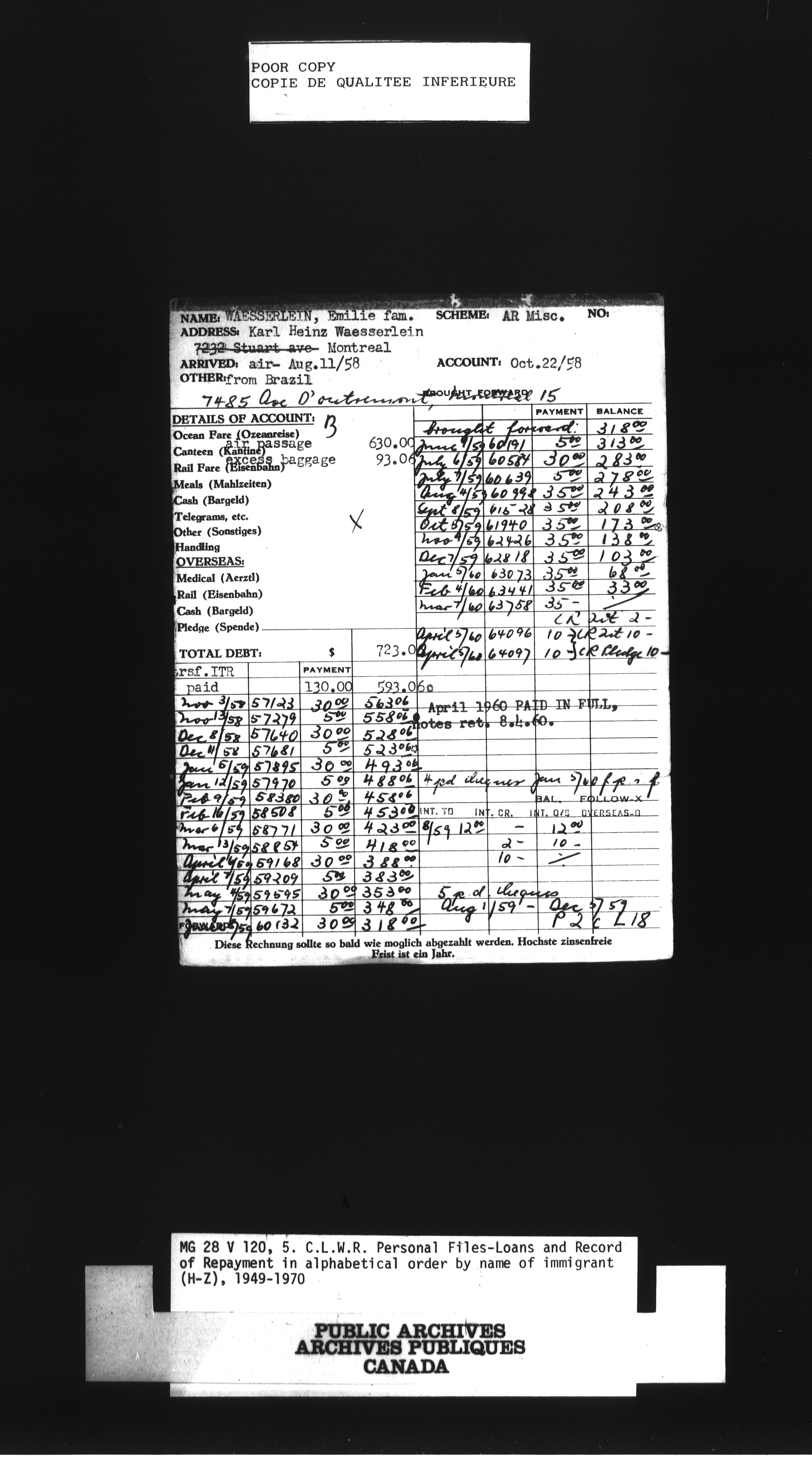 Canadian Lutheran World Relief personnel files, loans and record of repayment in alphabetical order by name of immigrantCanadian Christian Council for resettlement of refugees, boat financial statements - 1389