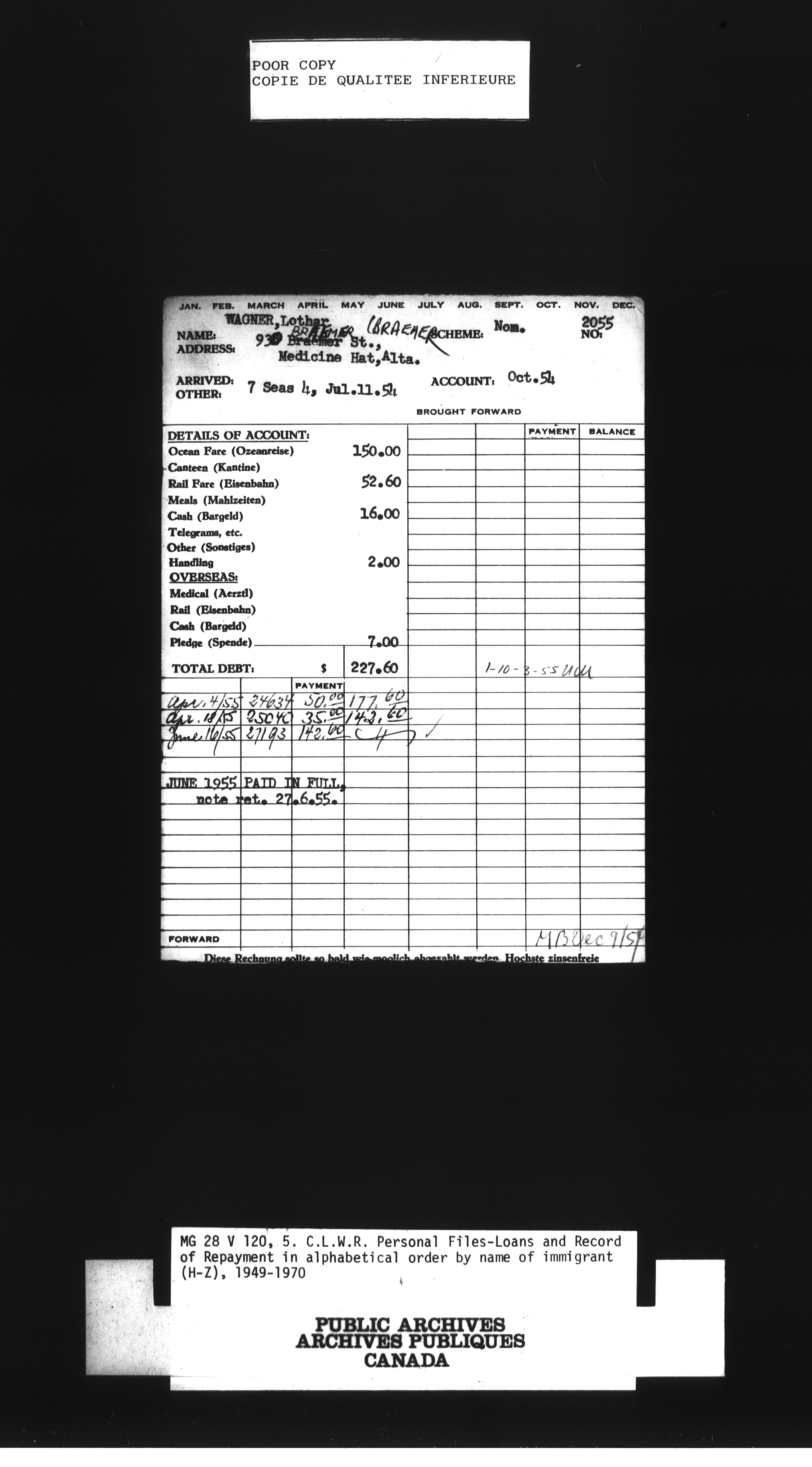 Canadian Lutheran World Relief personnel files, loans and record of repayment in alphabetical order by name of immigrantCanadian Christian Council for resettlement of refugees, boat financial statements - 1389