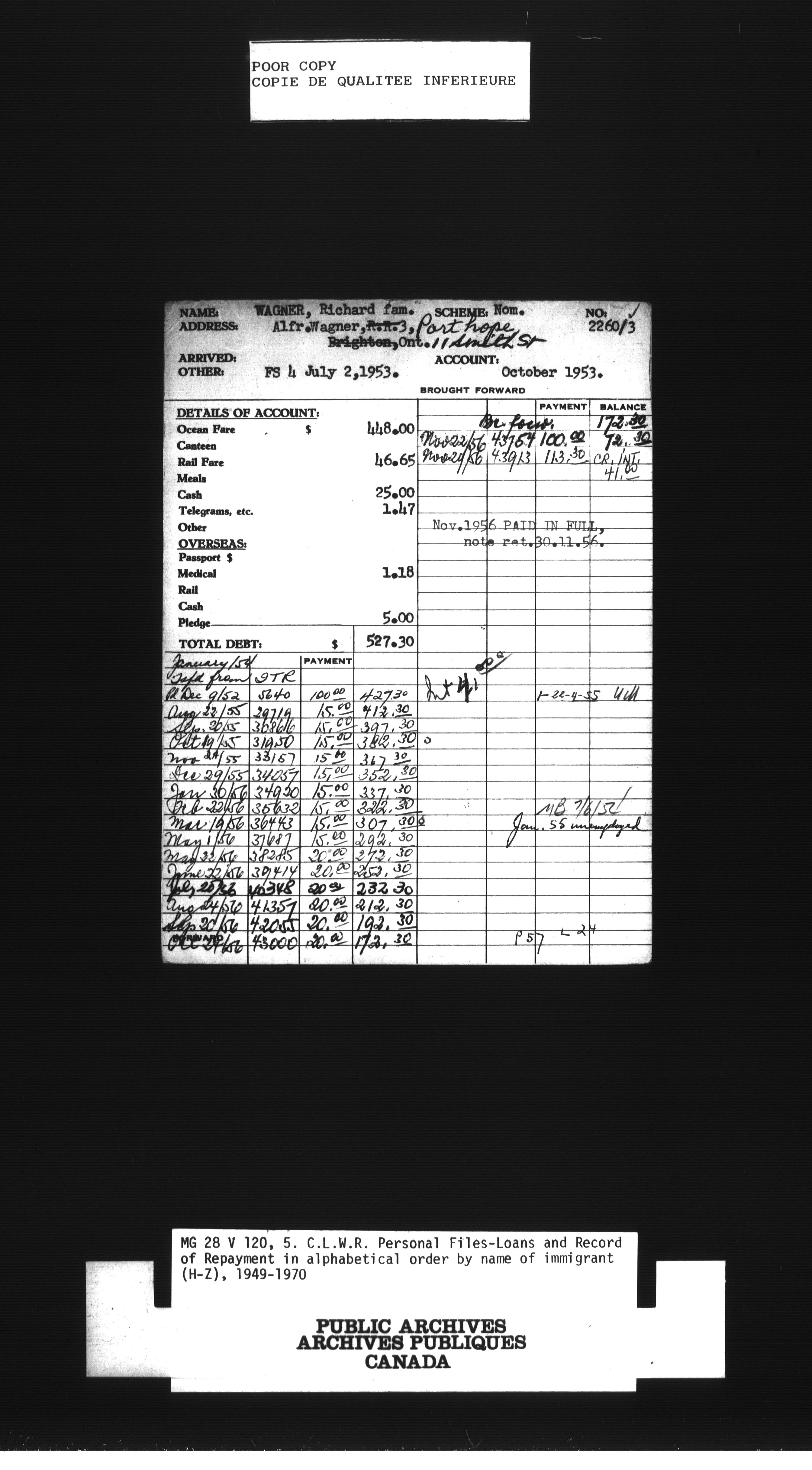 Canadian Lutheran World Relief personnel files, loans and record of repayment in alphabetical order by name of immigrantCanadian Christian Council for resettlement of refugees, boat financial statements - 1389