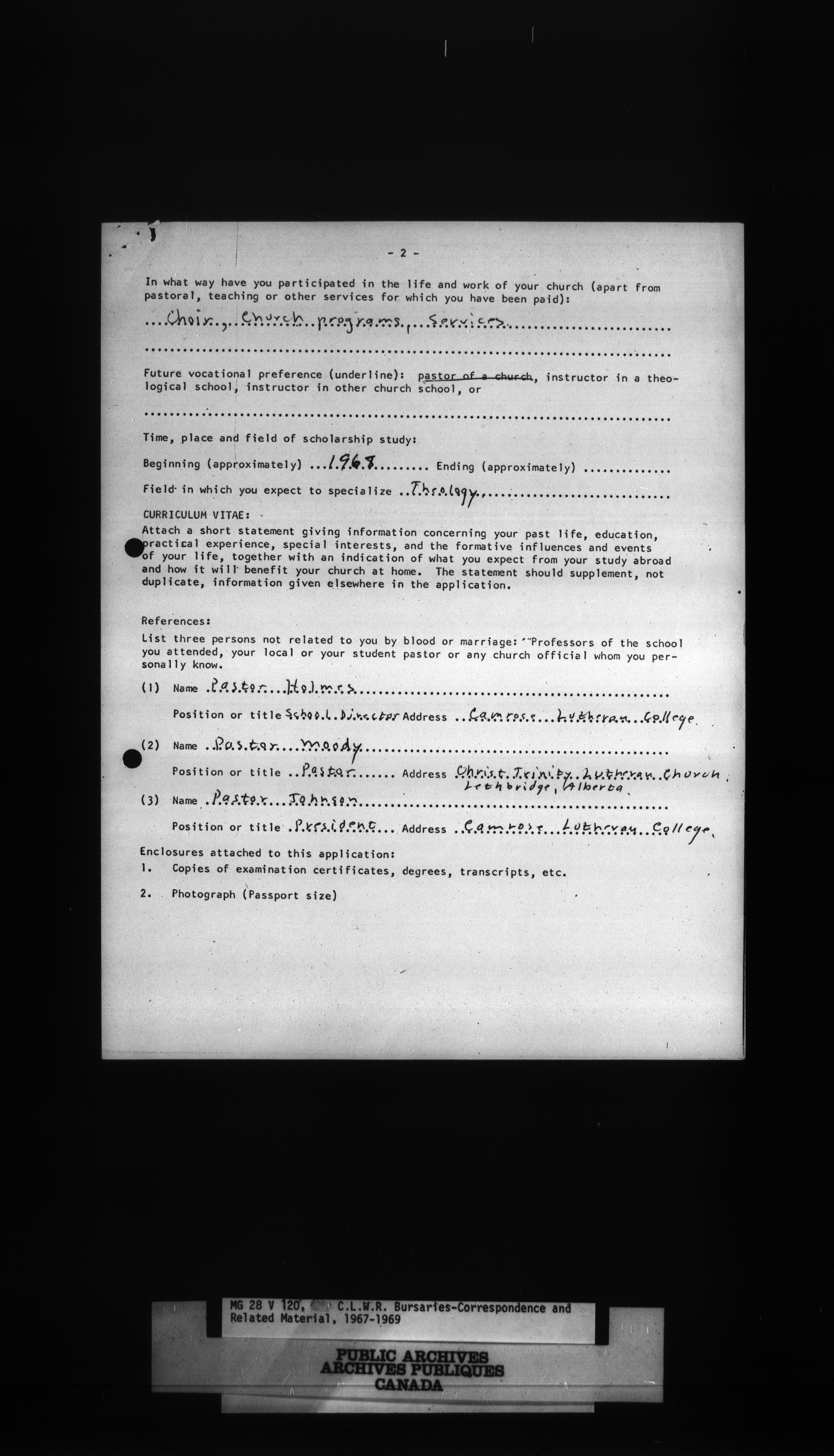 Canadian Lutheran World Relief, Bursaries correspondence and related materials - 1396