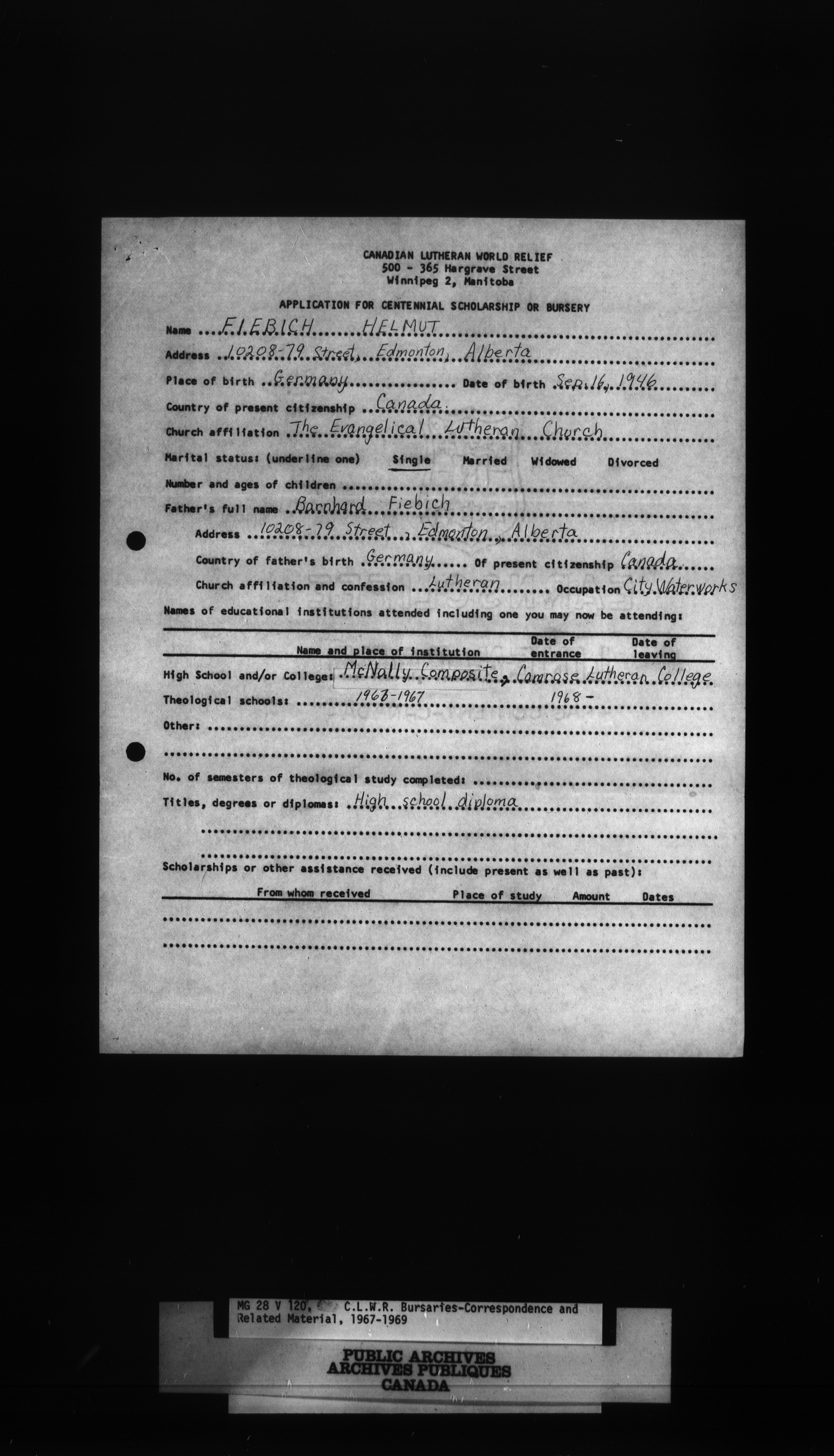 Canadian Lutheran World Relief, Bursaries correspondence and related materials - 1396