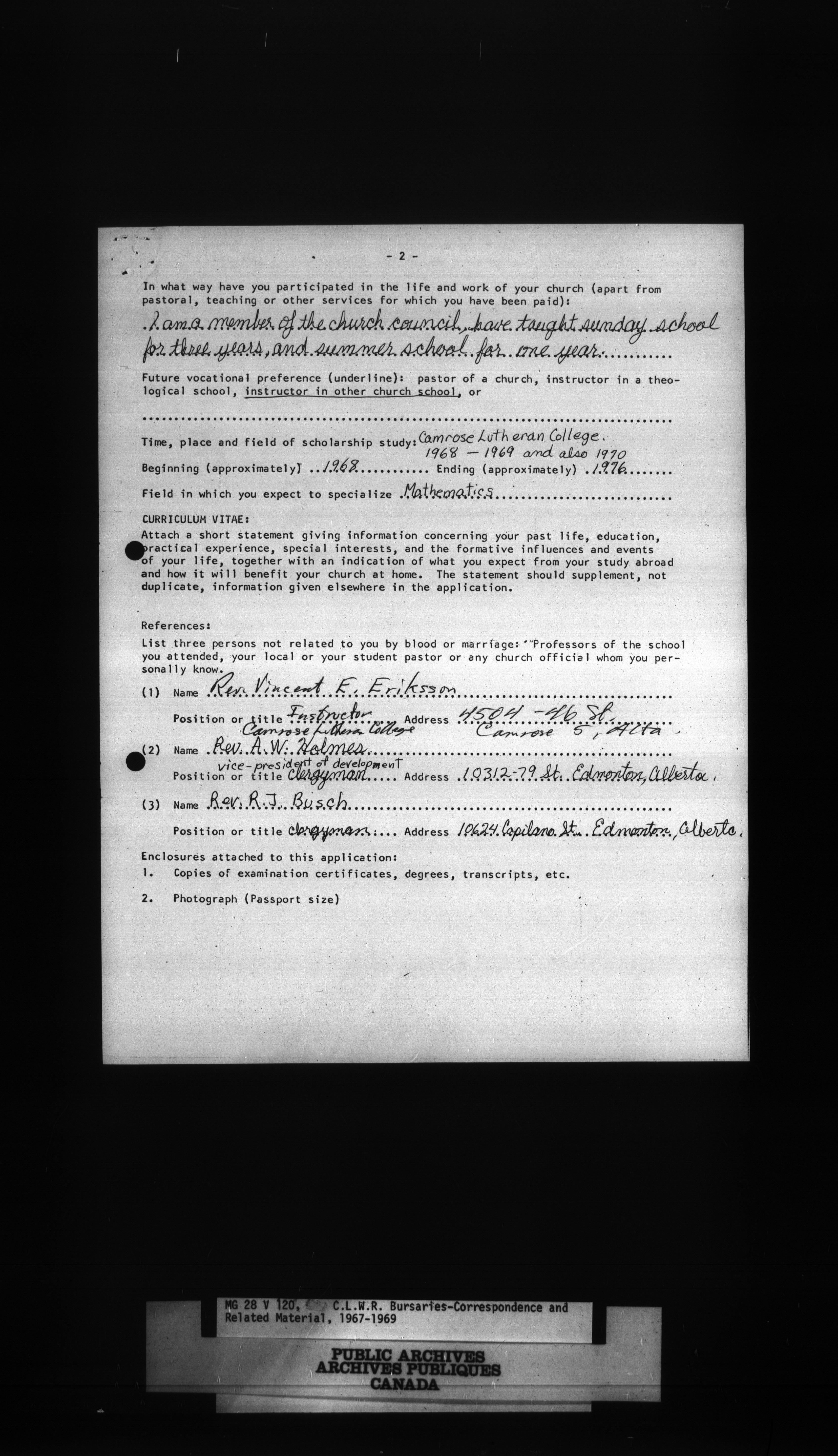 Canadian Lutheran World Relief, Bursaries correspondence and related materials - 1396