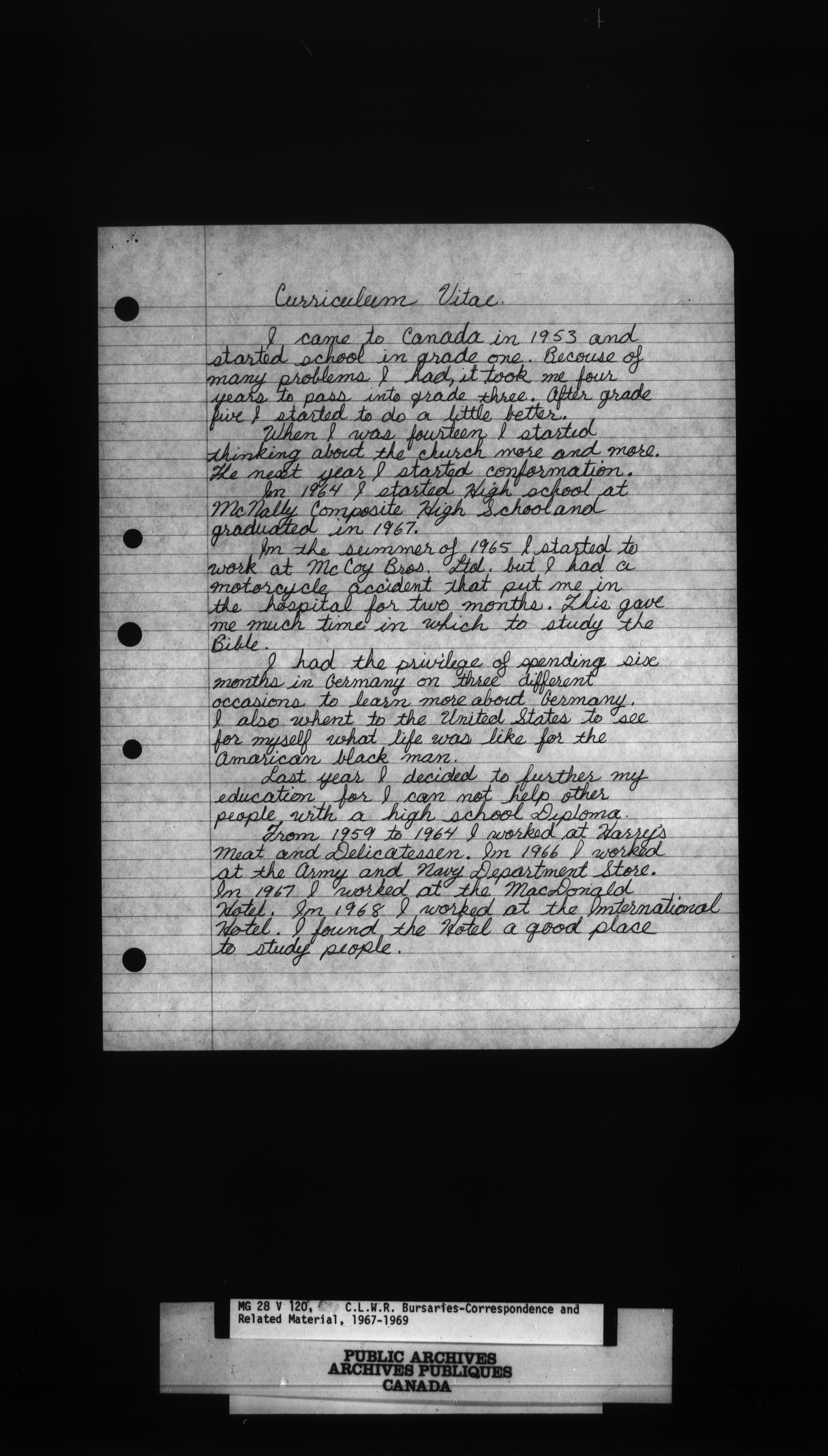 Canadian Lutheran World Relief, Bursaries correspondence and related materials - 1396